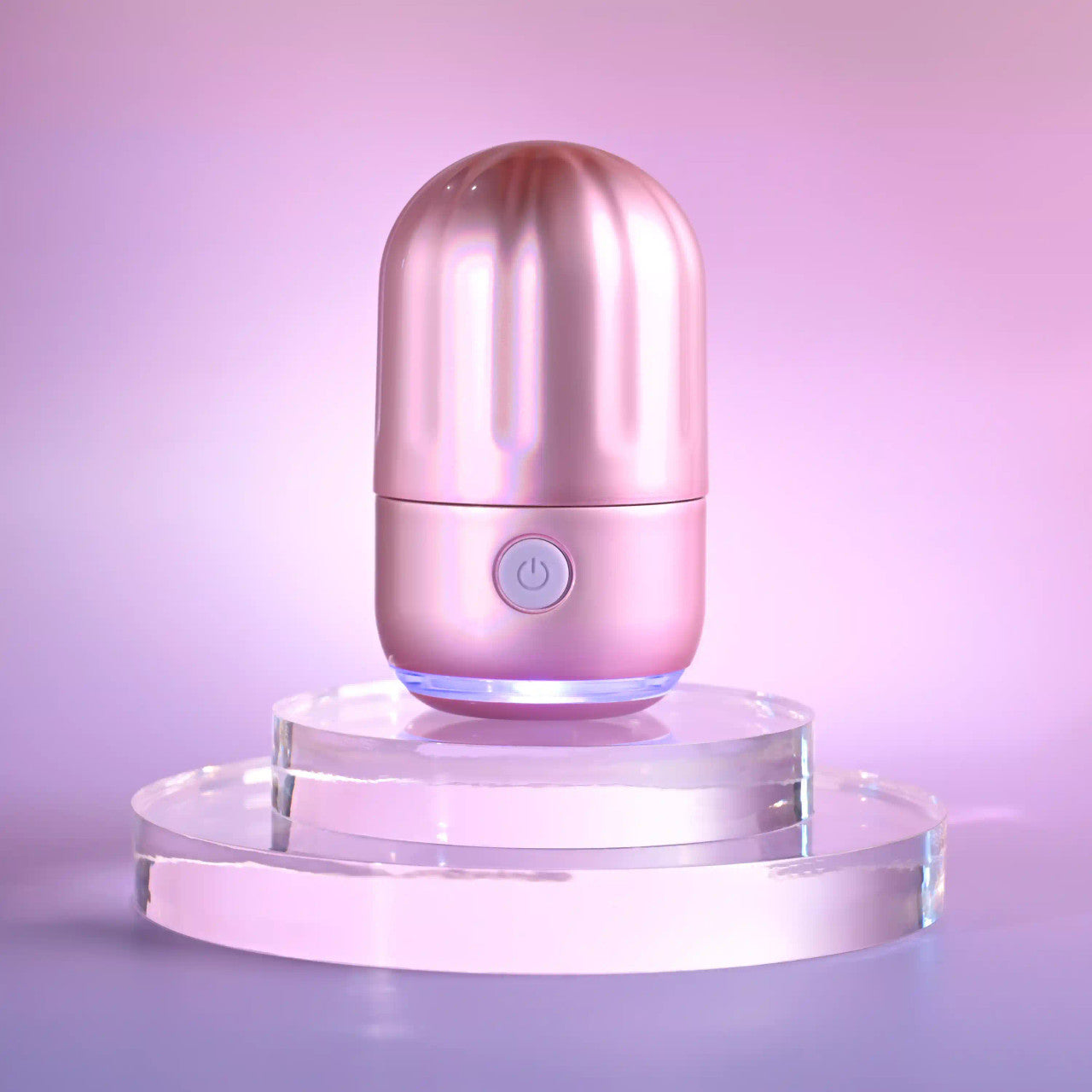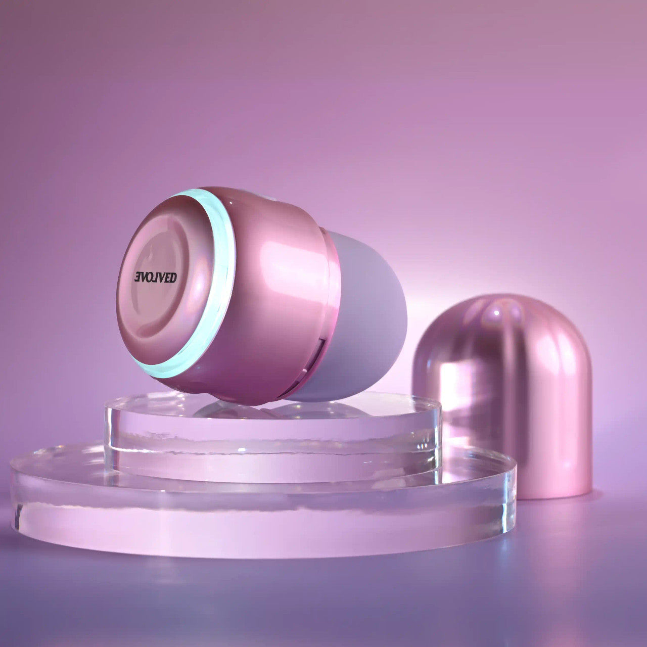 Tap into Vacation Vibes anytime with this chunky pink-pearl iridescent toy that delivers pulses to wherever you crave them most. The discreet textured canister lid pops off to reveal the rounded silicone tapping head. A colorful changing light in the base and a one-touch control button make it effortless to navigate.