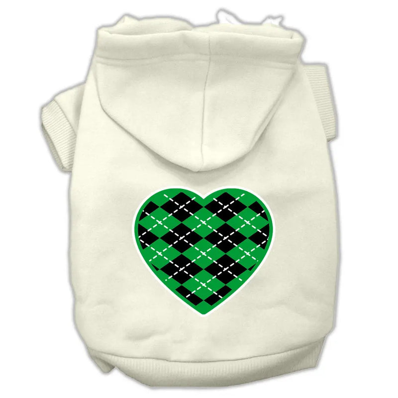 Argyle Heart Green Screen Print Pet Hoodies Cream Size Xl