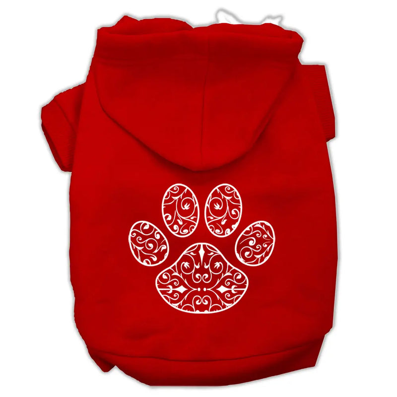 Henna Paw Screen Print Pet Hoodies Red Size Xxxl