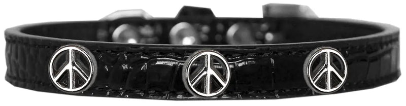 Peace Sign Widget Croc Dog Collar Black Size 10