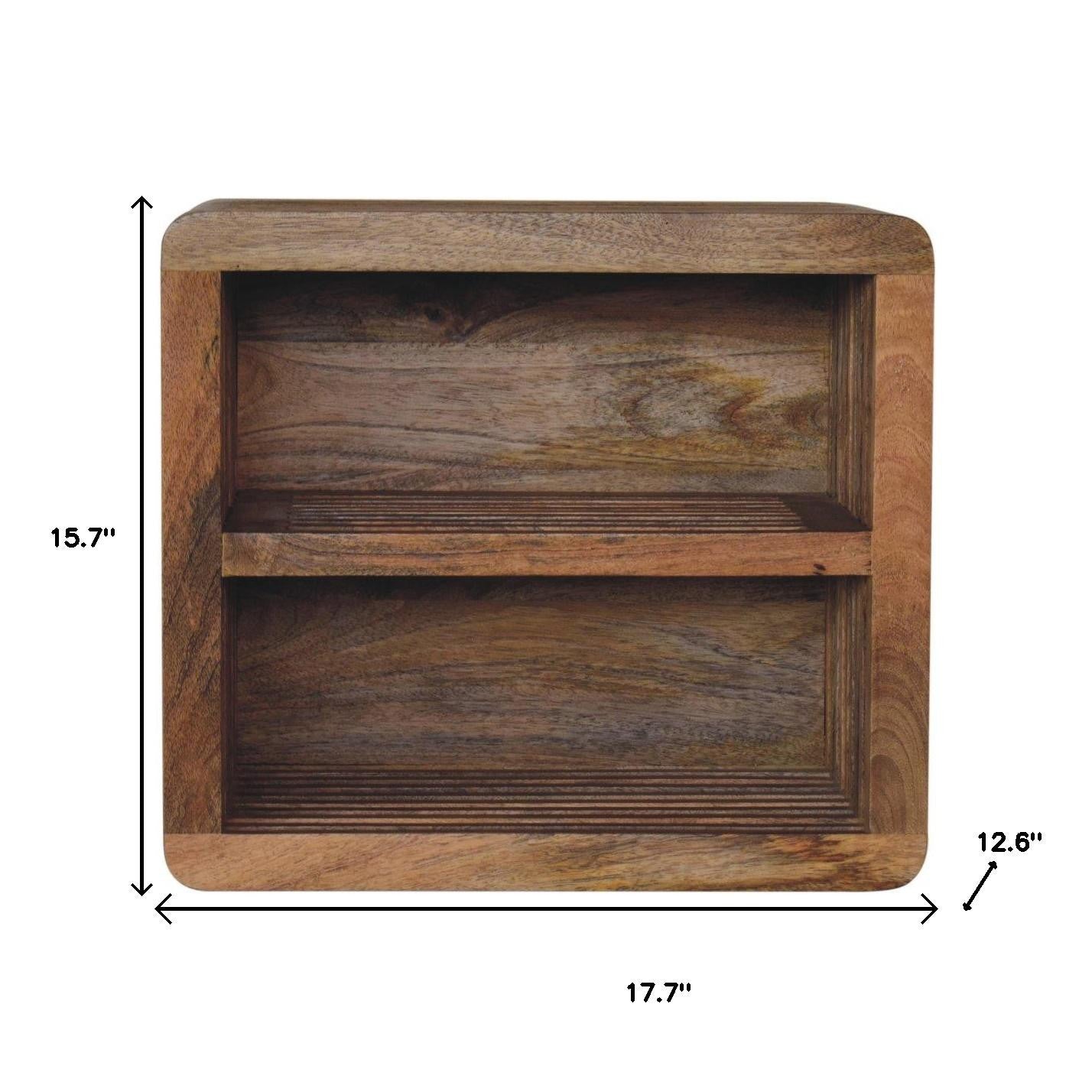 18" Brown Solid Wood Carved Geometric Floating Nightstand