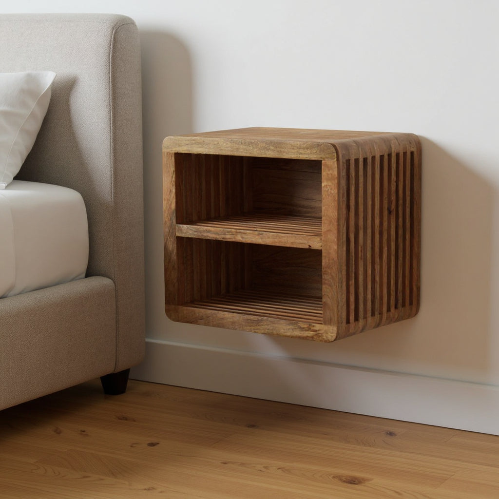 18" Brown Solid Wood Carved Geometric Floating Nightstand Default Title