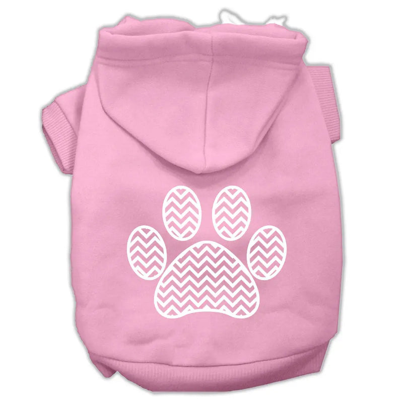 Chevron Paw Screen Print Pet Hoodies Light Pink Size Lg