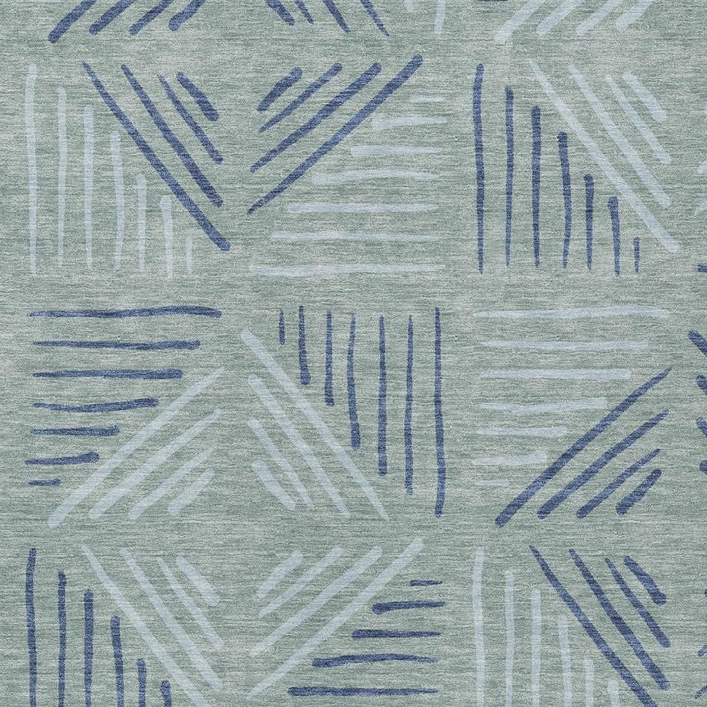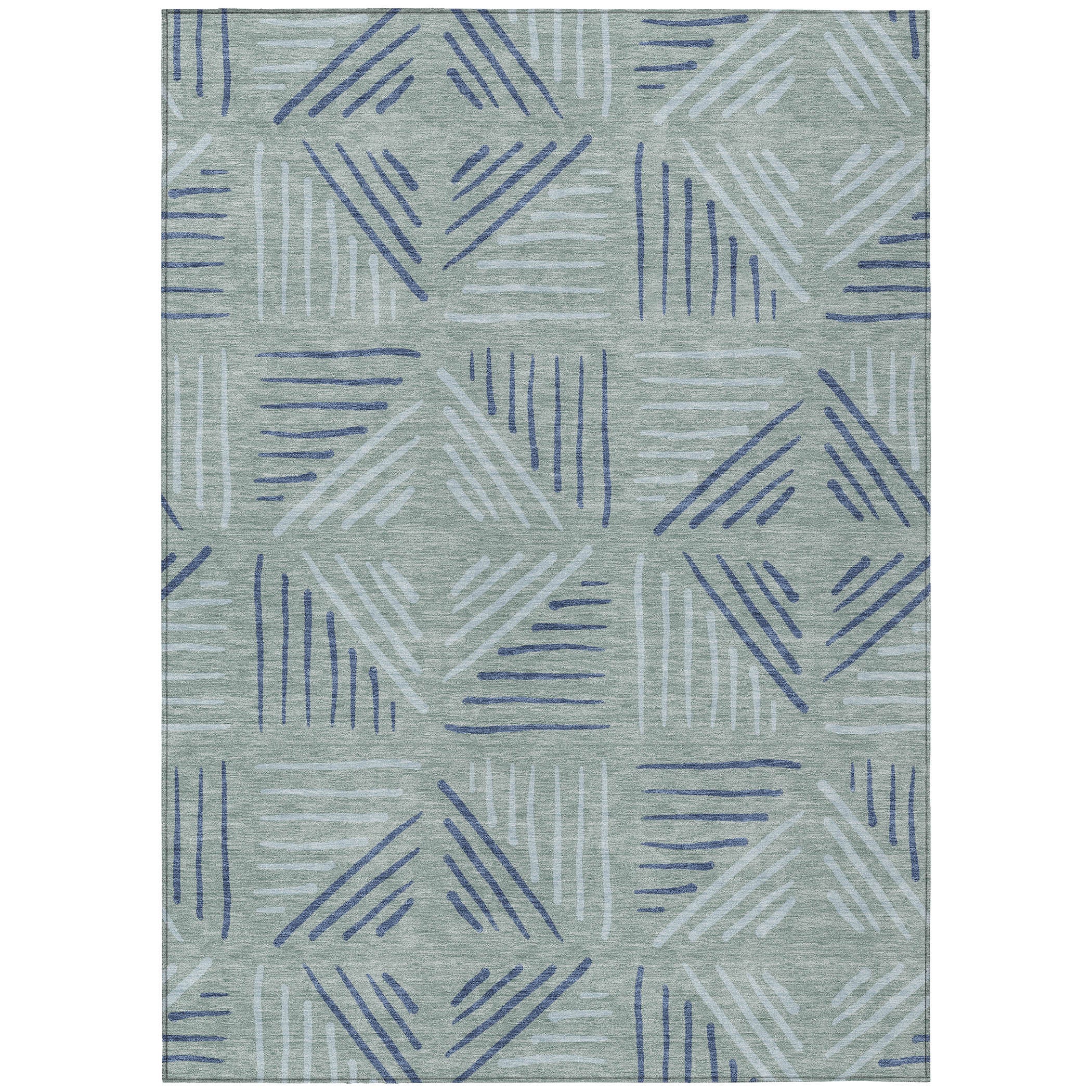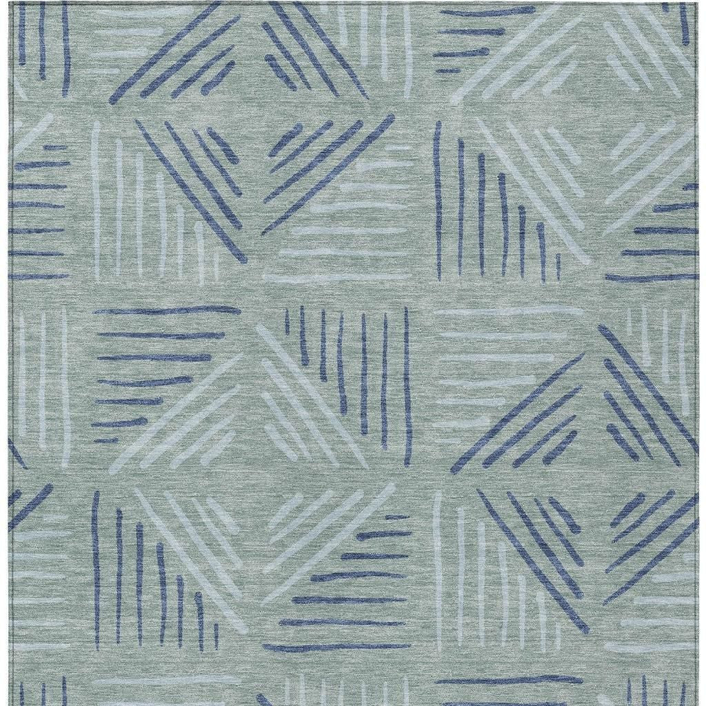 10' X 14' Aqua And Blue Geometric Washable Indoor Outdoor Area Rug