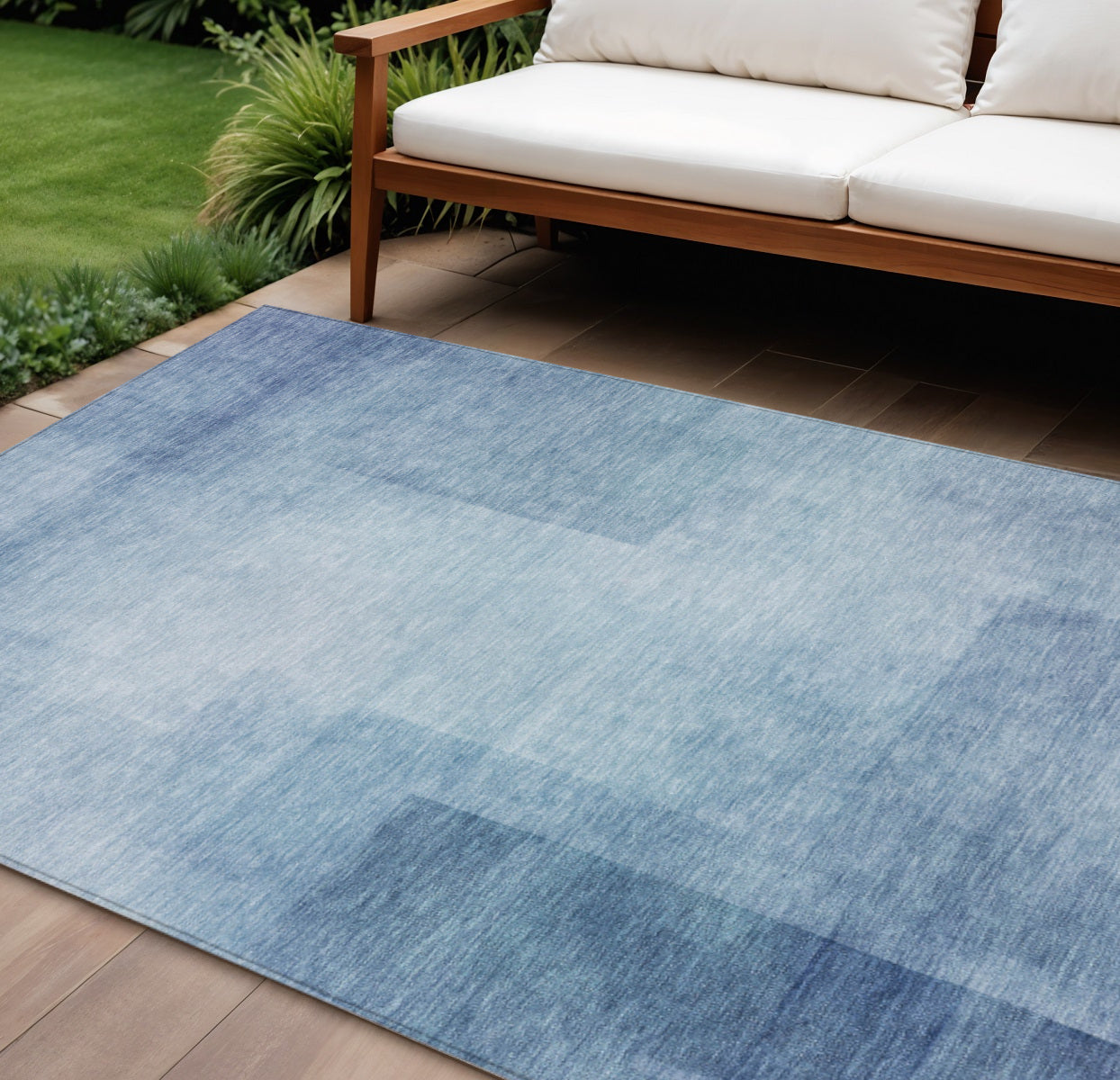 10' X 14' Blue Geometric Washable Indoor Outdoor Area Rug