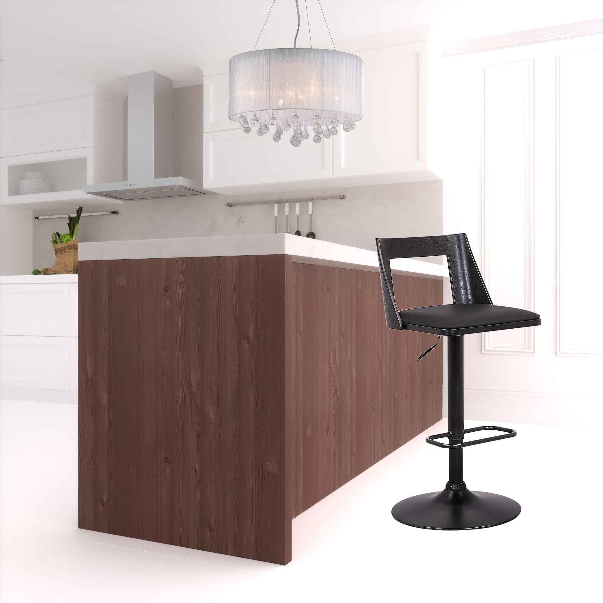 24" Black Faux Leather And Iron Swivel Adjustable Height Bar Chair