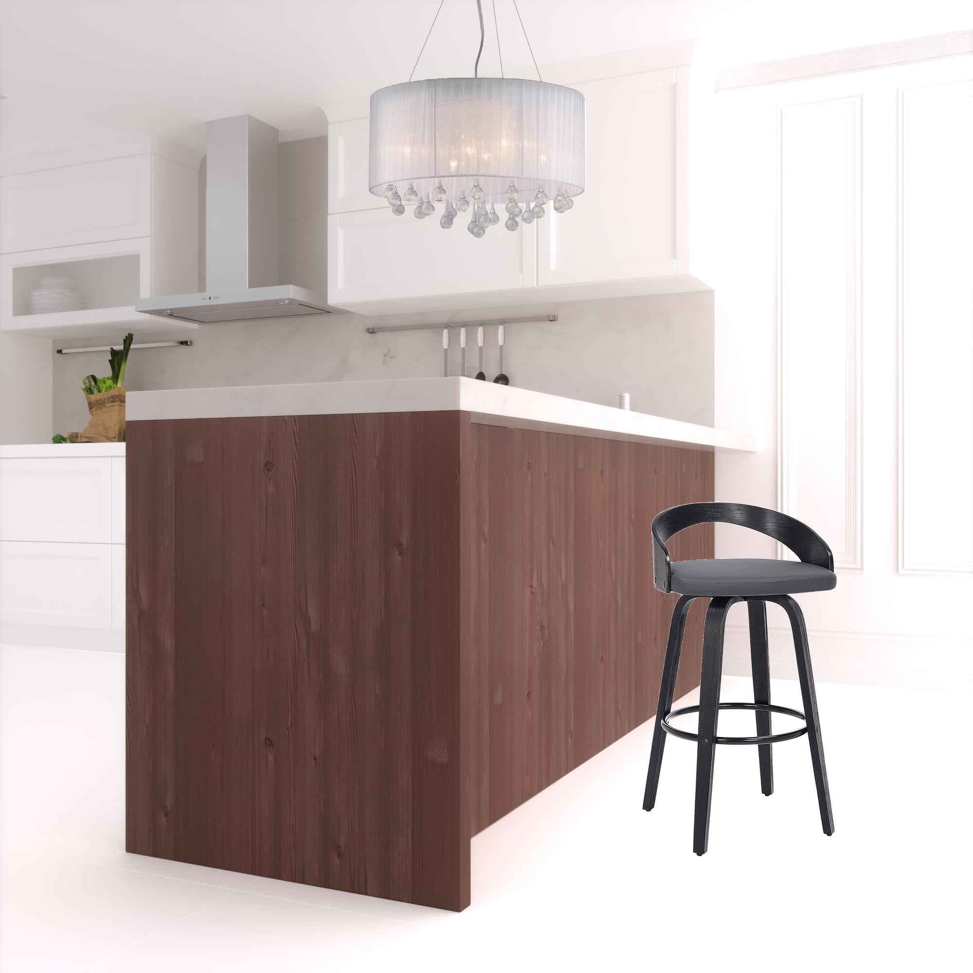 26" Gray And Black Faux Leather And Iron Swivel Low Back Counter Height Bar Chair