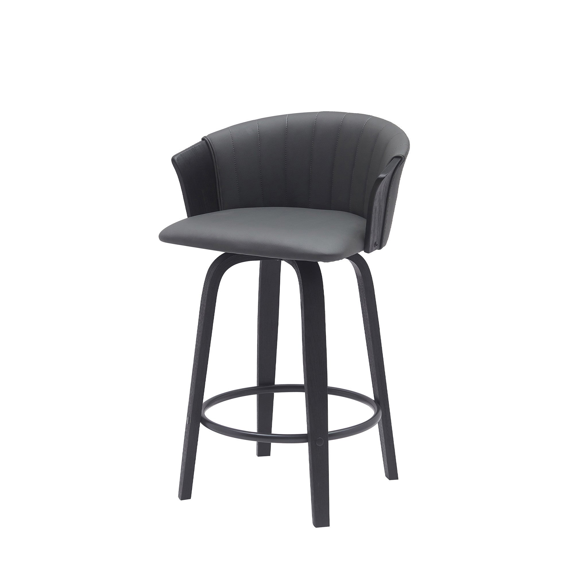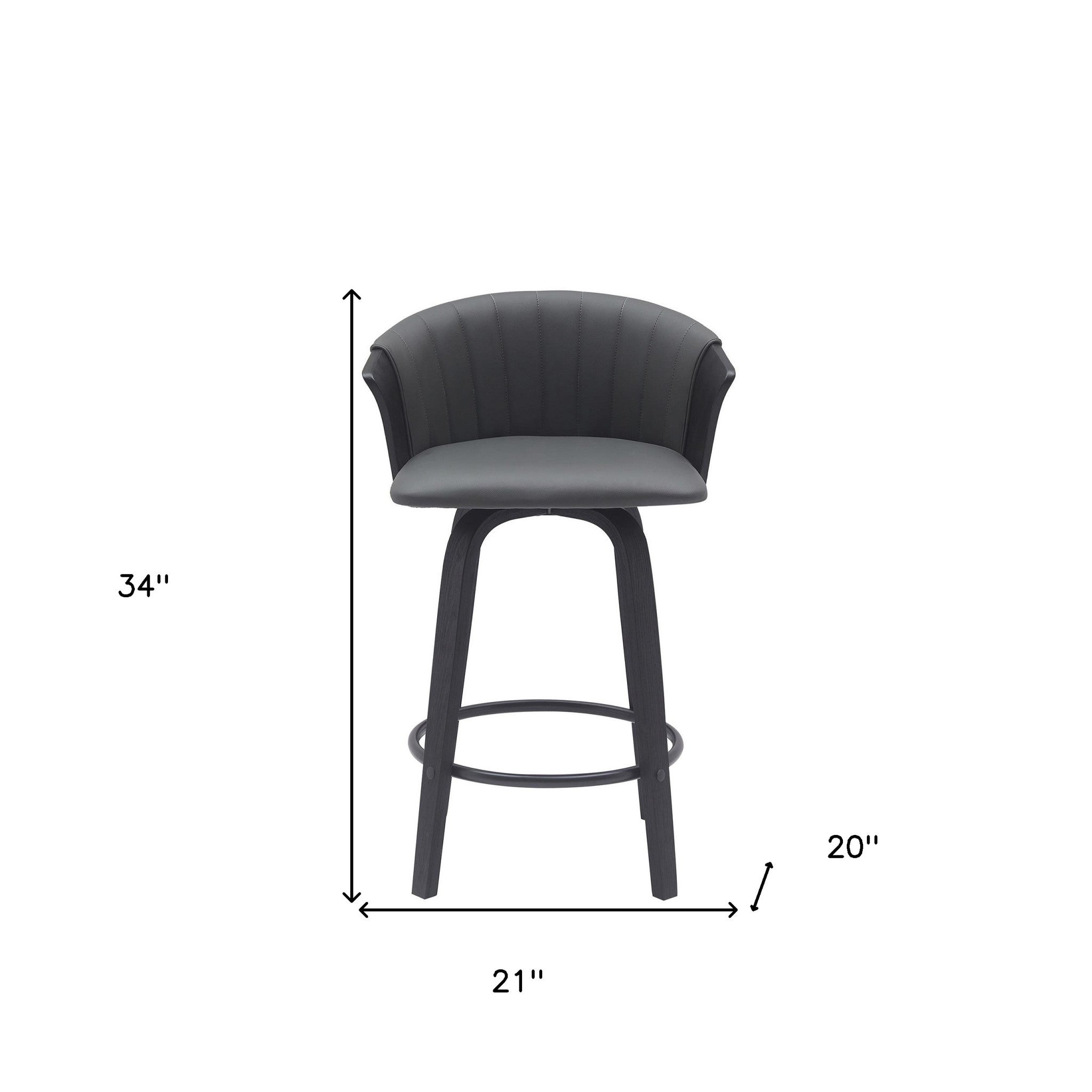 26" Gray and Black Faux Leather Counter Height Swivel Bar Chair