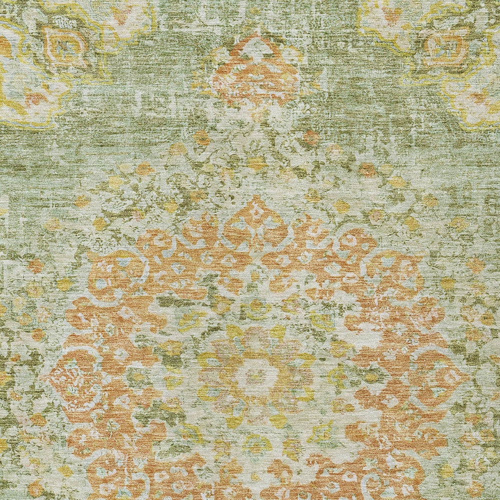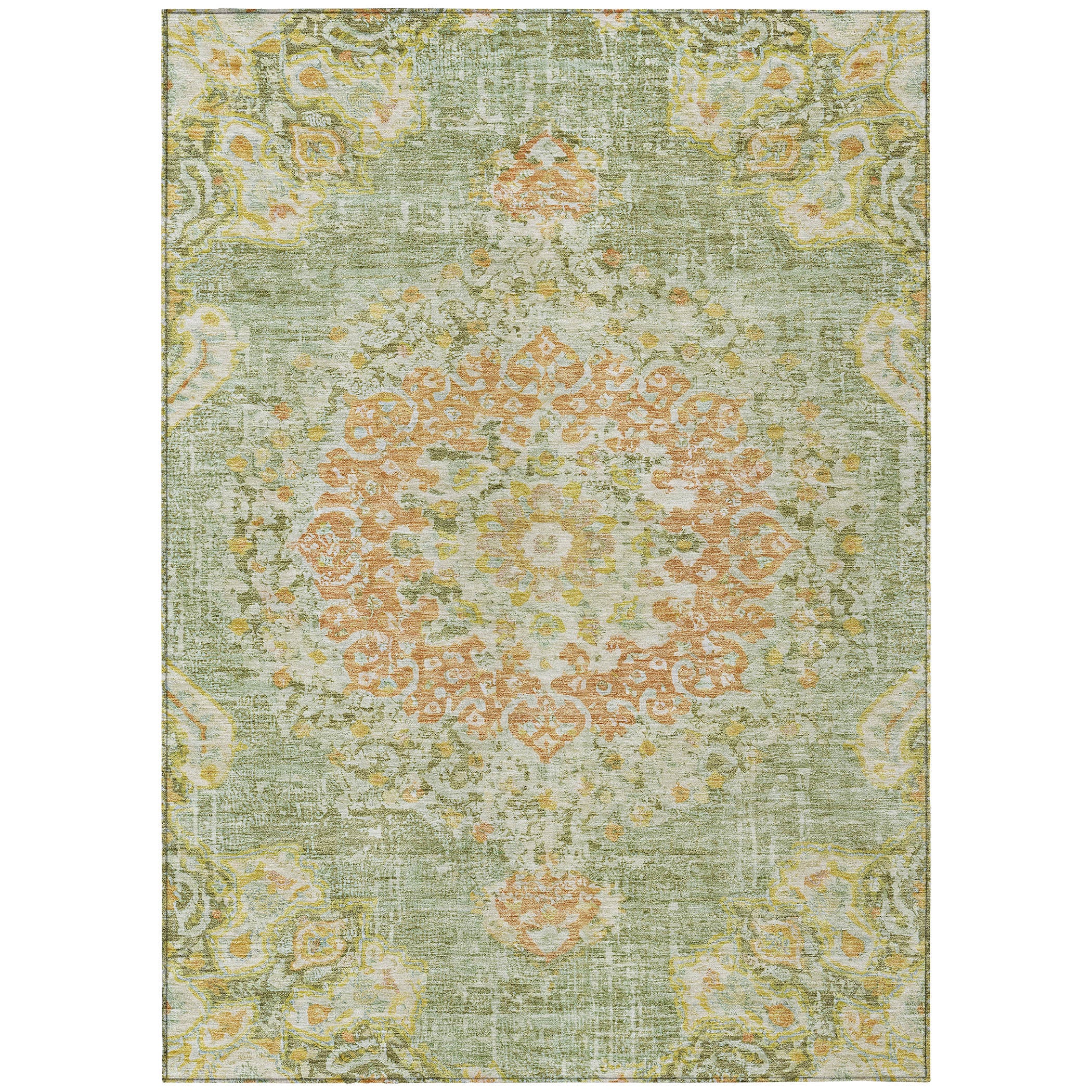 3' X 5' Artichoke Green Floral Medallion Washable Indoor Outdoor Area Rug