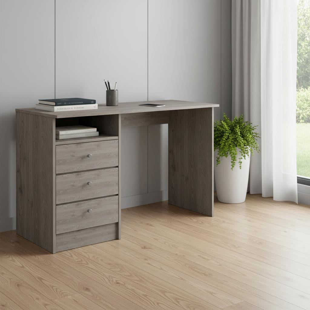 46" Light Gray and Brown Wood Computer Desk With Three Drawers