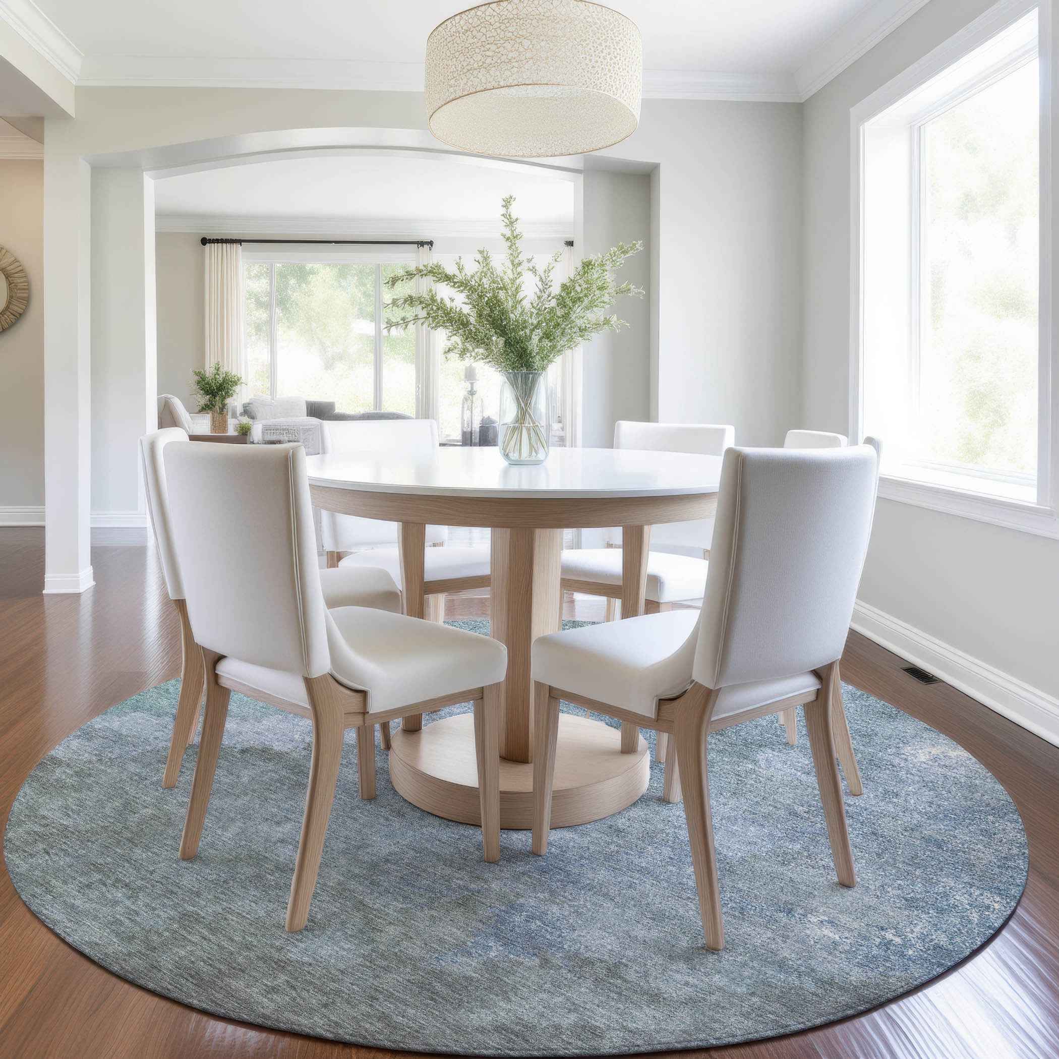 8' Blue And Gray Round Abstract Washable Indoor Outdoor Area Rug