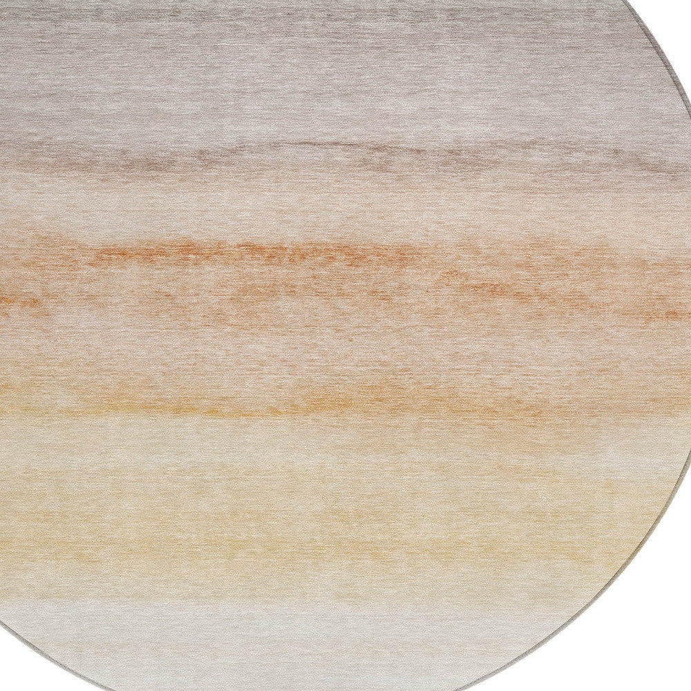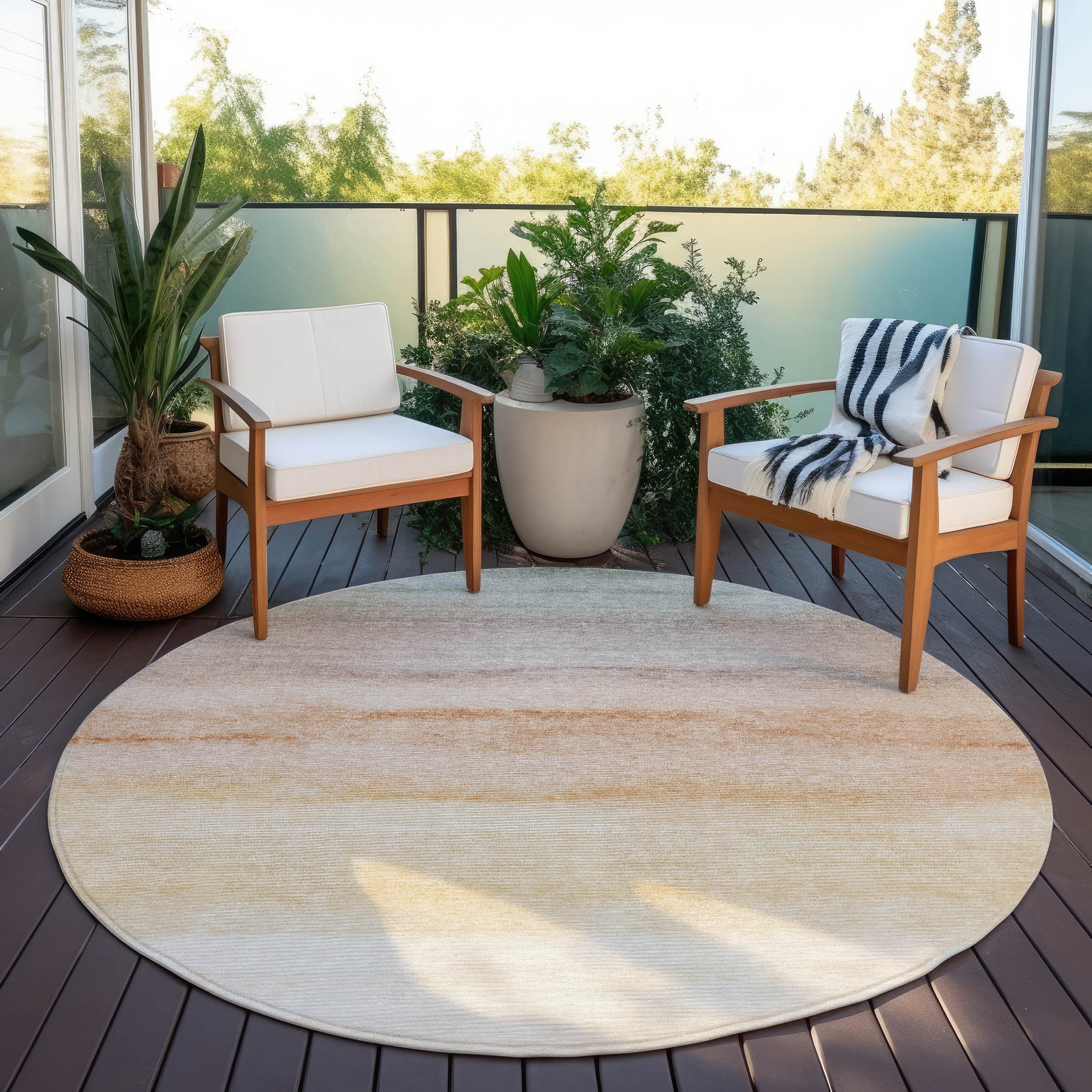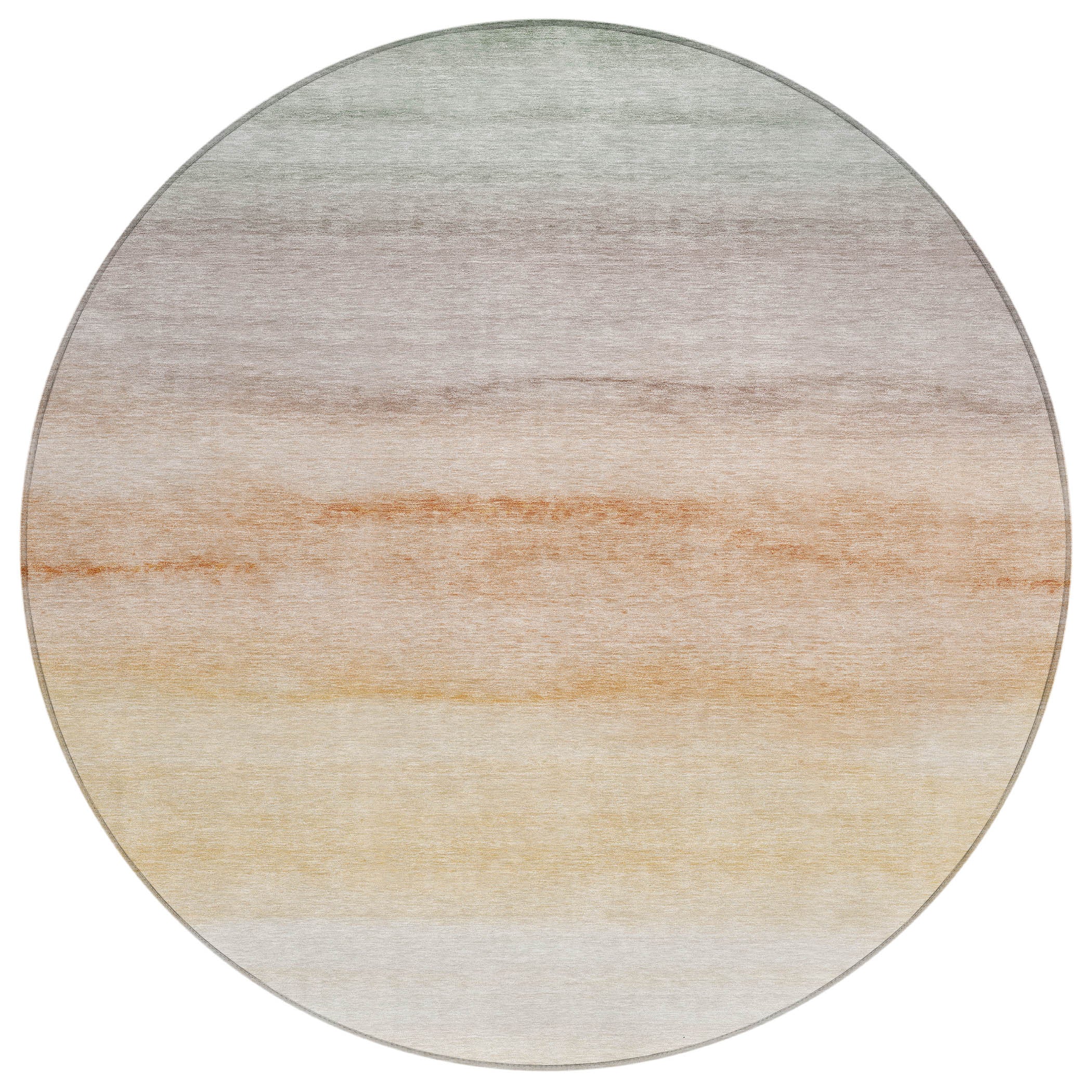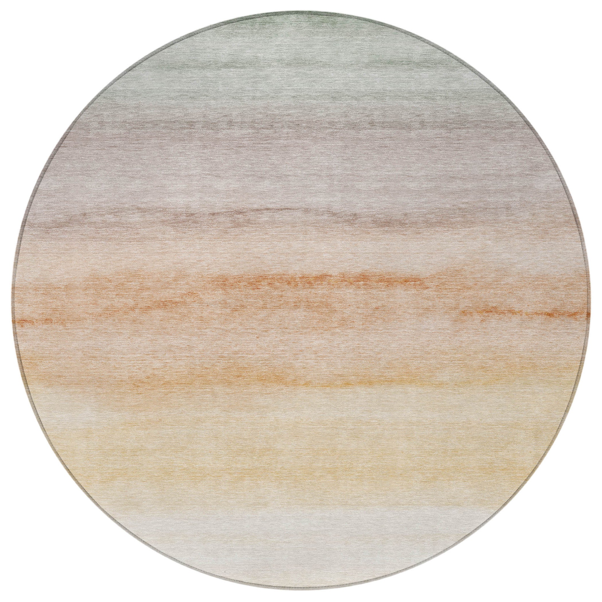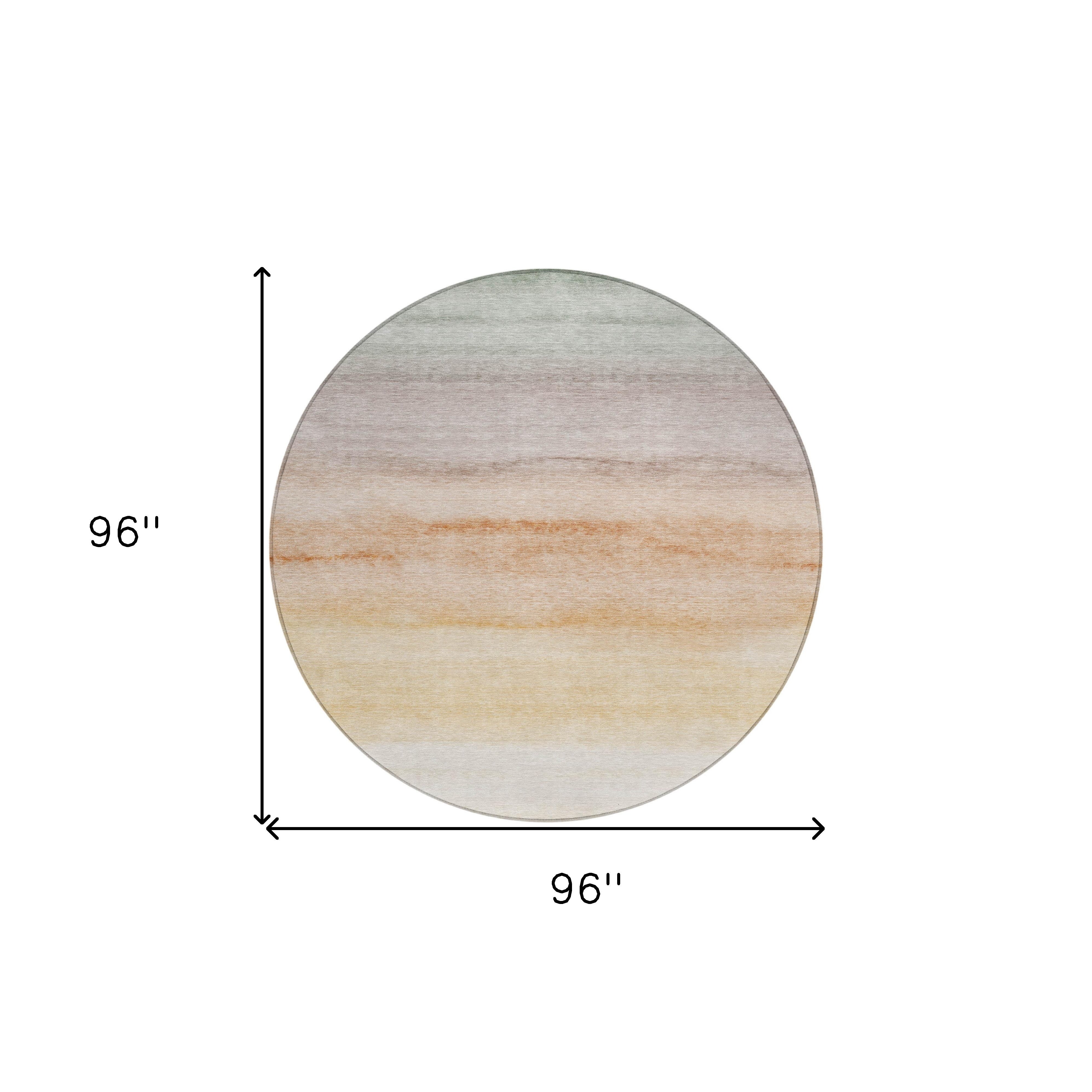 8' Coral Round Striped Washable Indoor Outdoor Area Rug