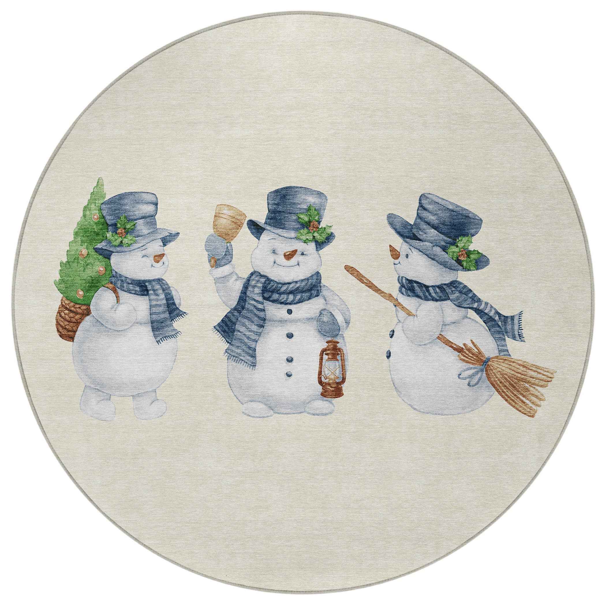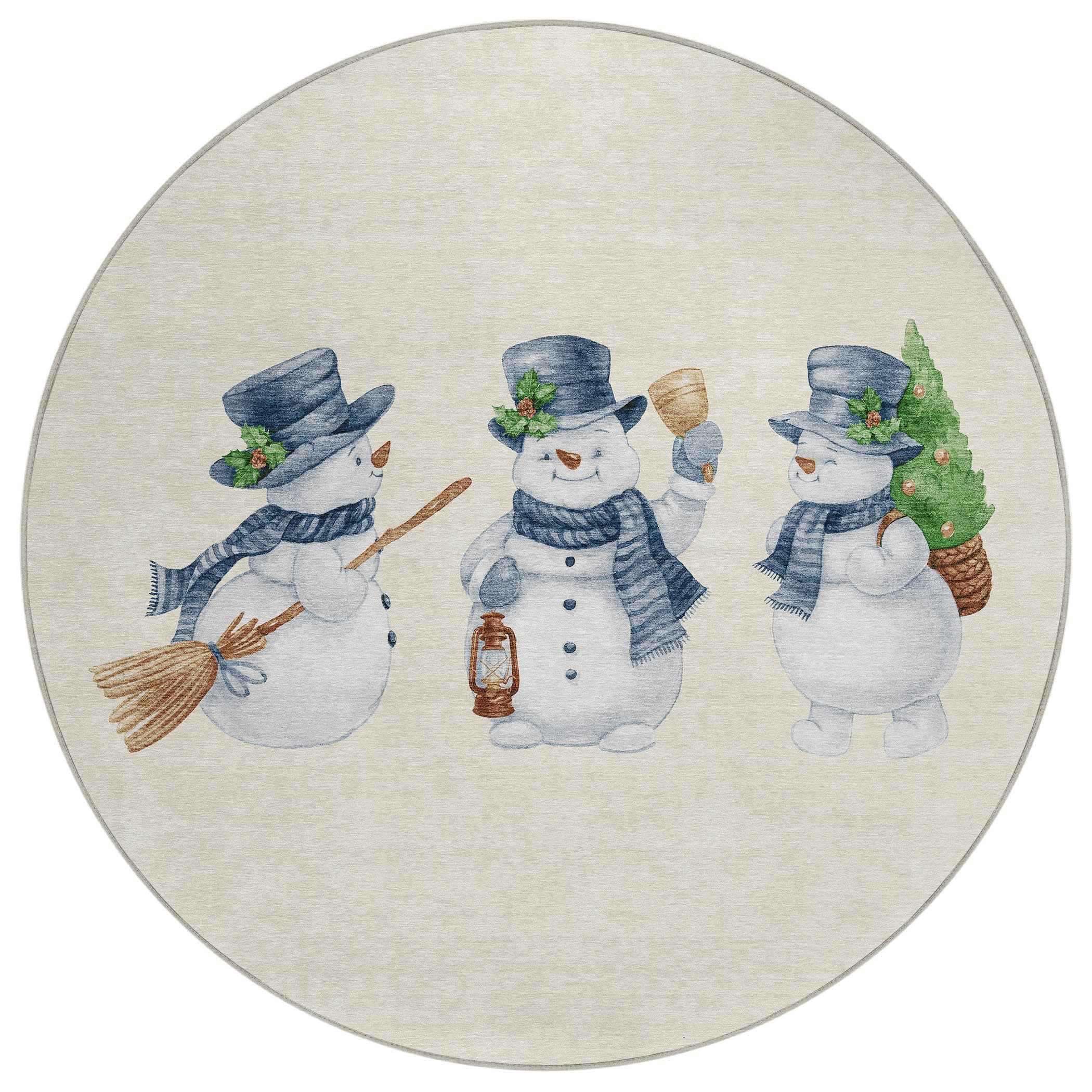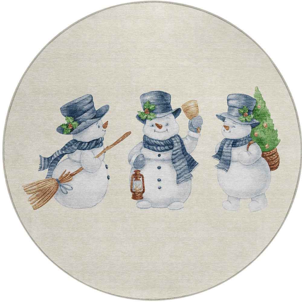 8' Ivory And Denim Blue Round Botanical Leaves Washable Indoor Outdoor Area Rug