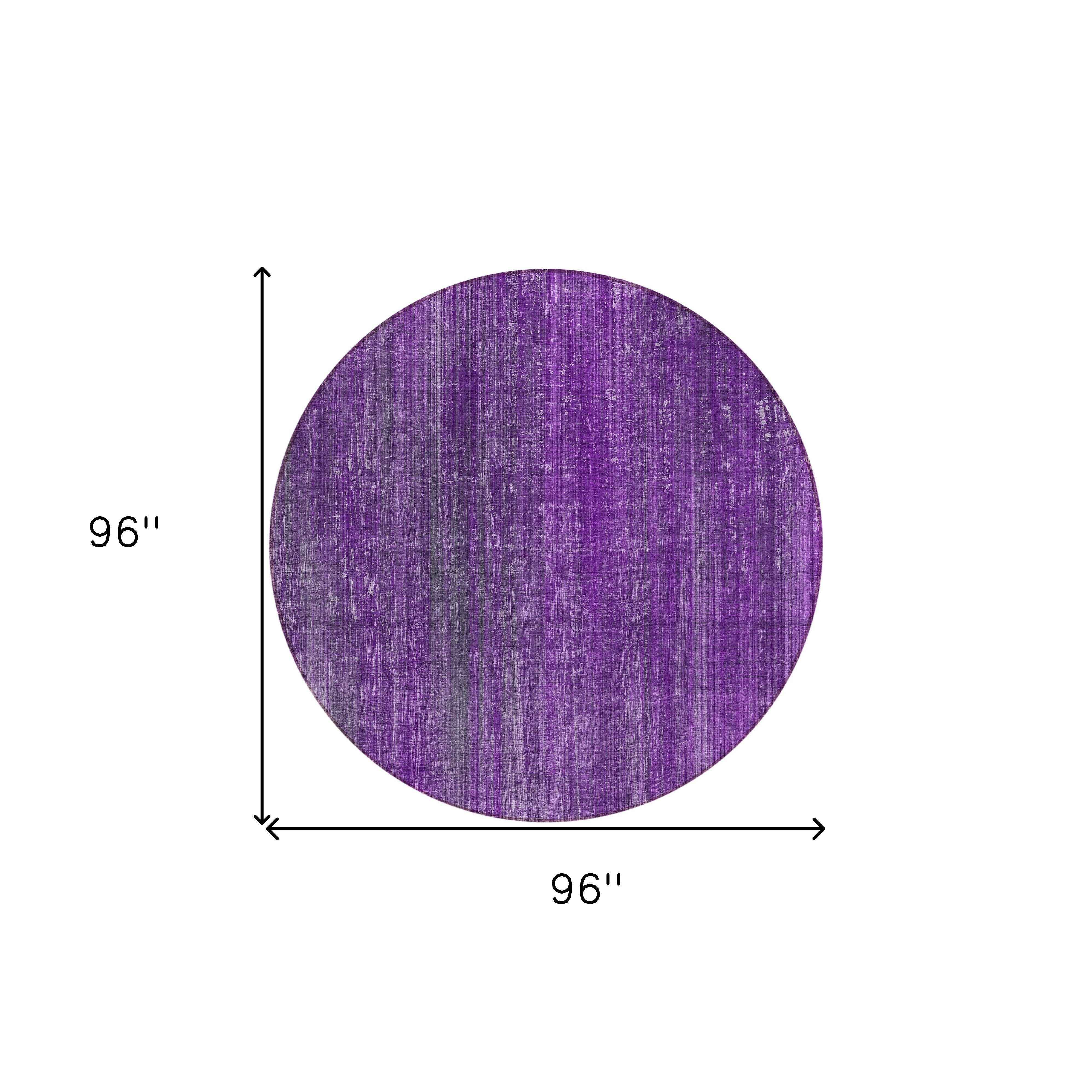 8' Round Purple Round Striped Washable Non Skid Indoor Outdoor Area Rug