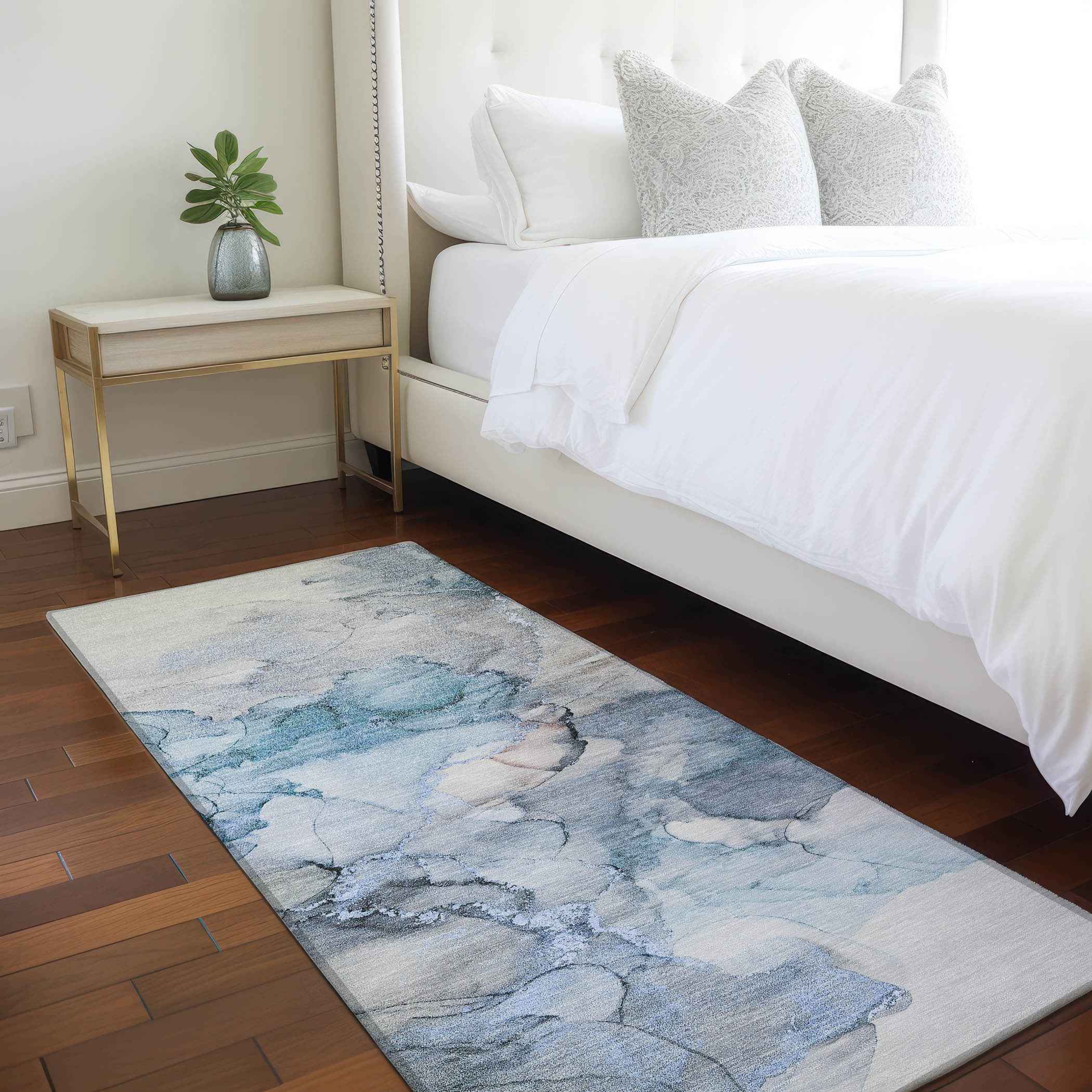 8' Runner Blue and Gray Abstract Washable Non Skid Indoor Outdoor Runner Rug