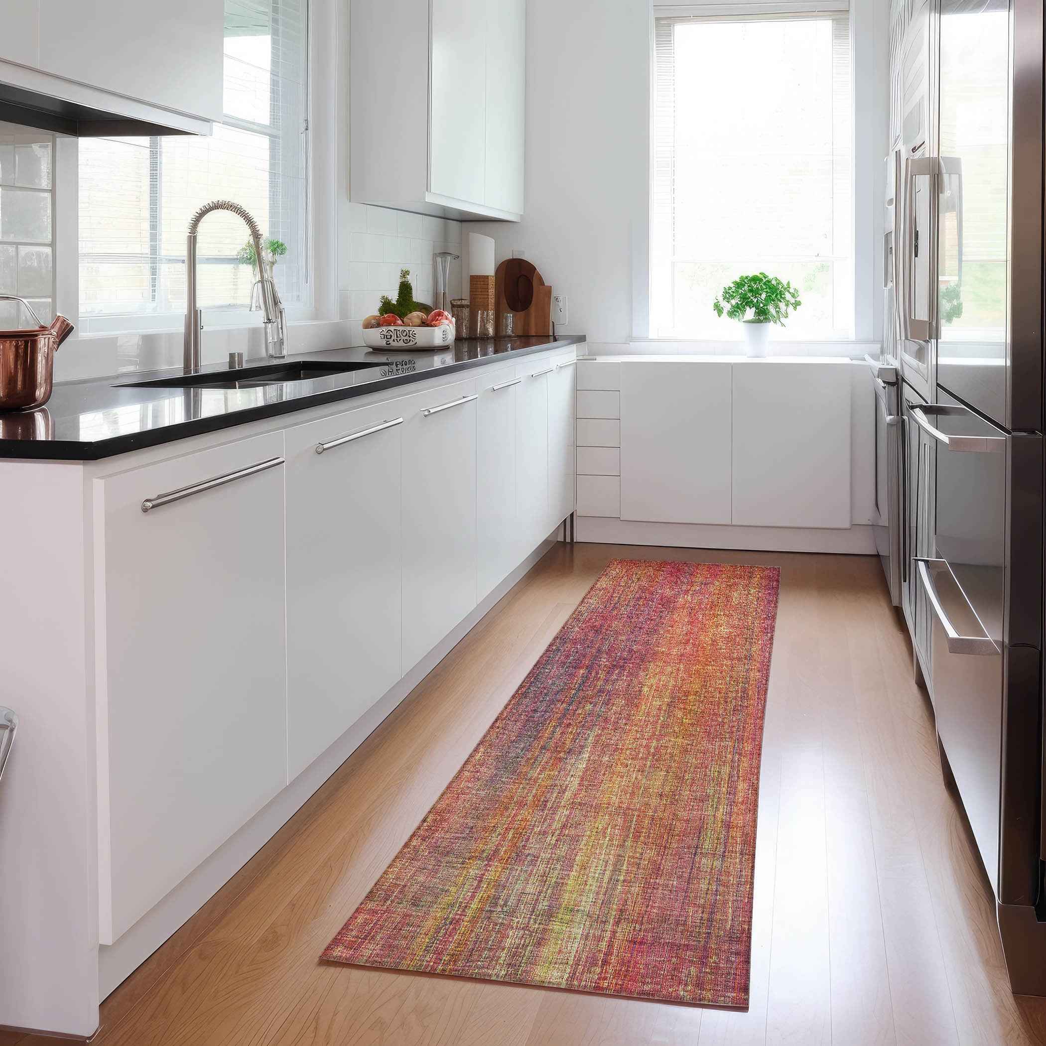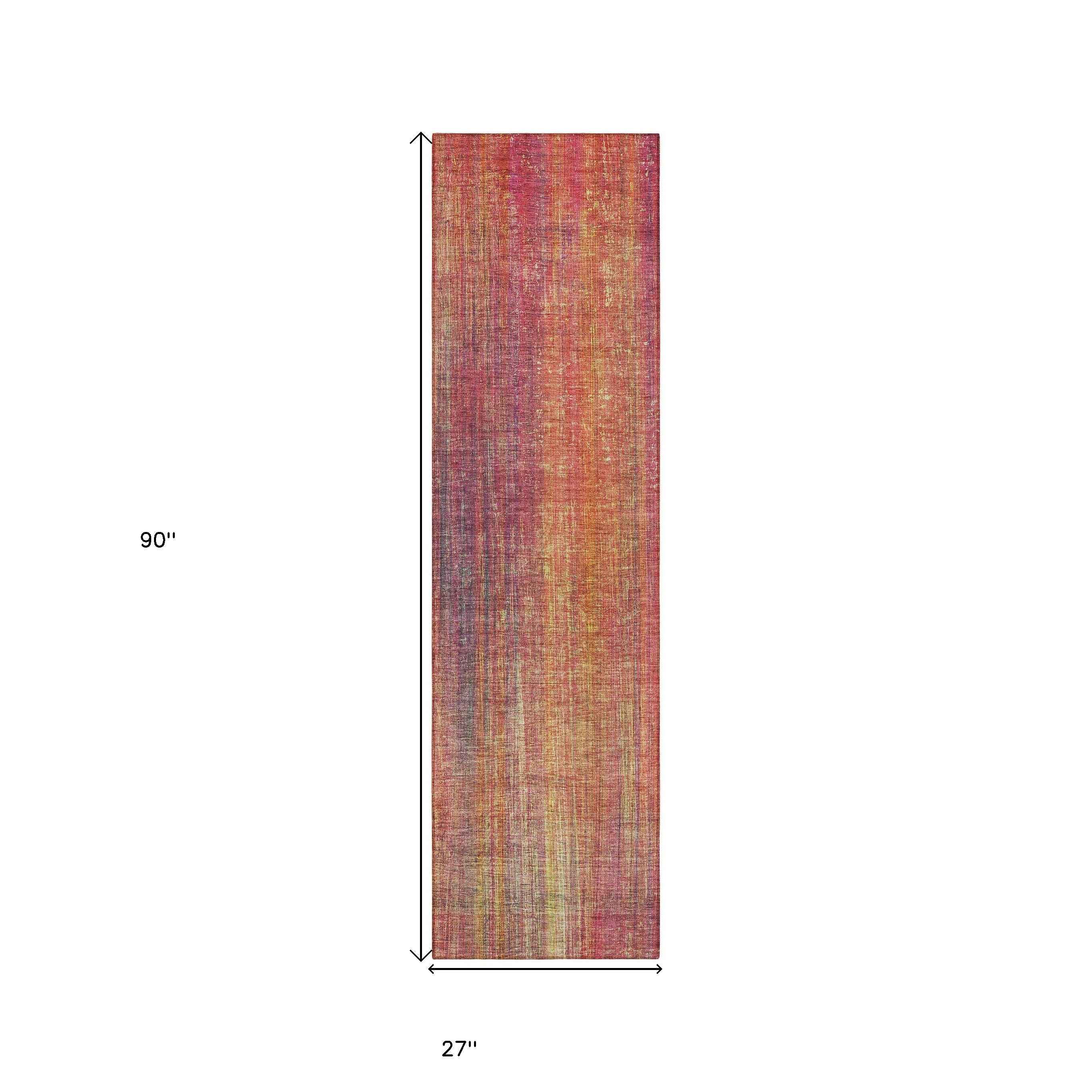 8' Runner Red and Orange Striped Washable Non Skid Indoor Outdoor Runner Rug