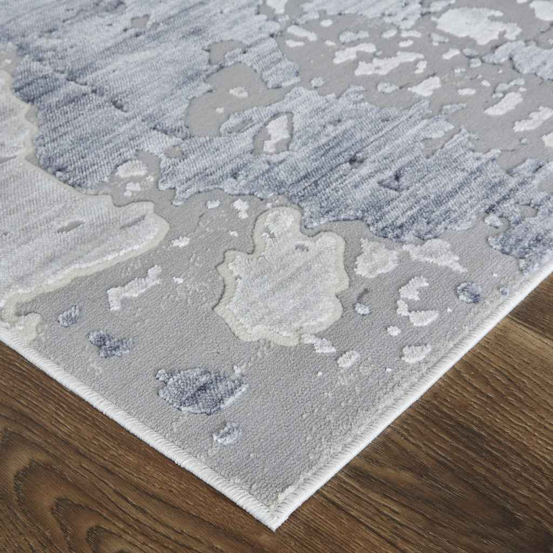 8' X 10' Ivory And Blue Abstract Power Loom Distressed Area Rug