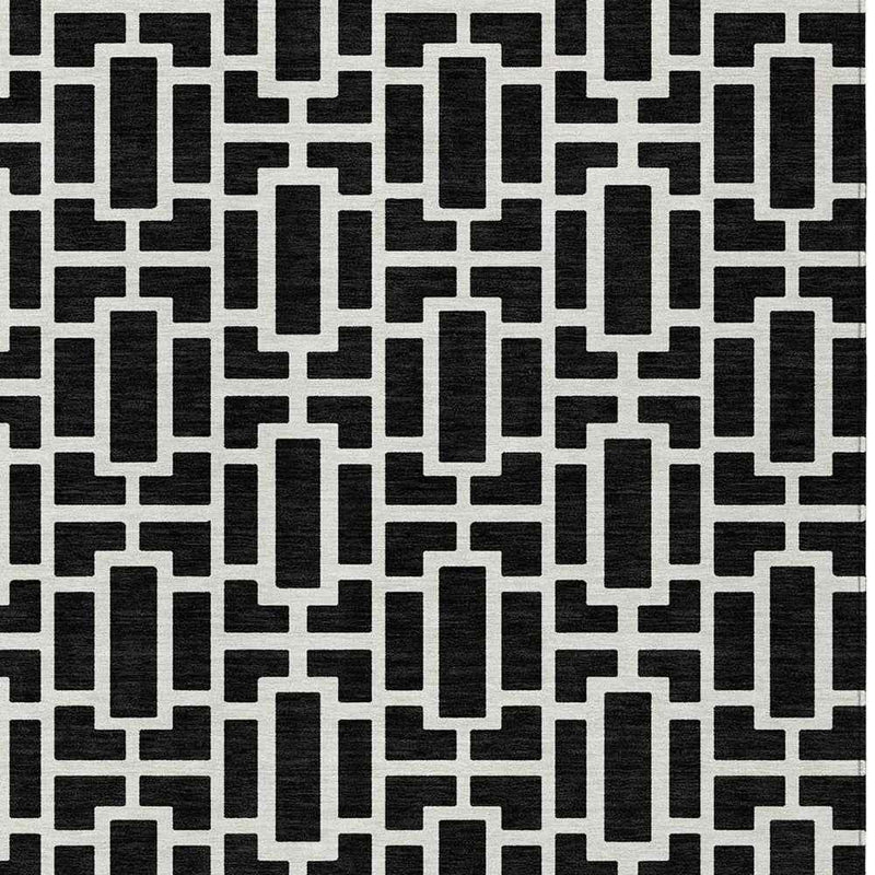 9' X 12' Black And Ivory Geometric Washable Indoor Outdoor Area Rug