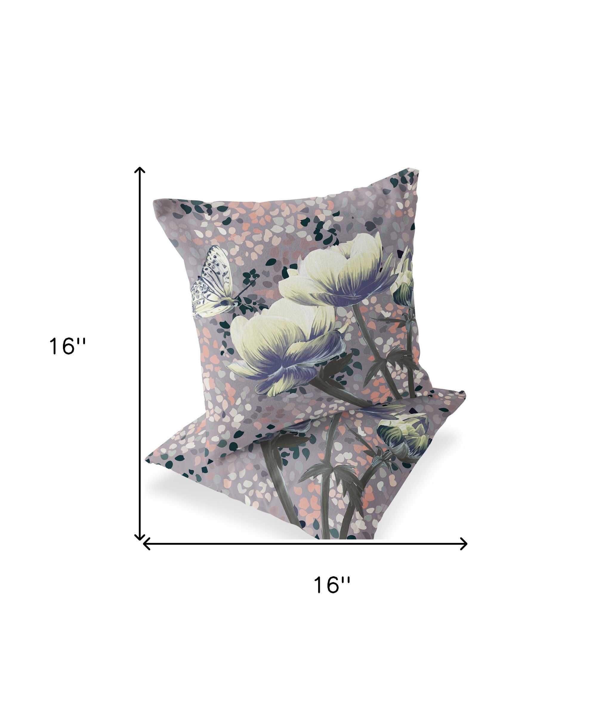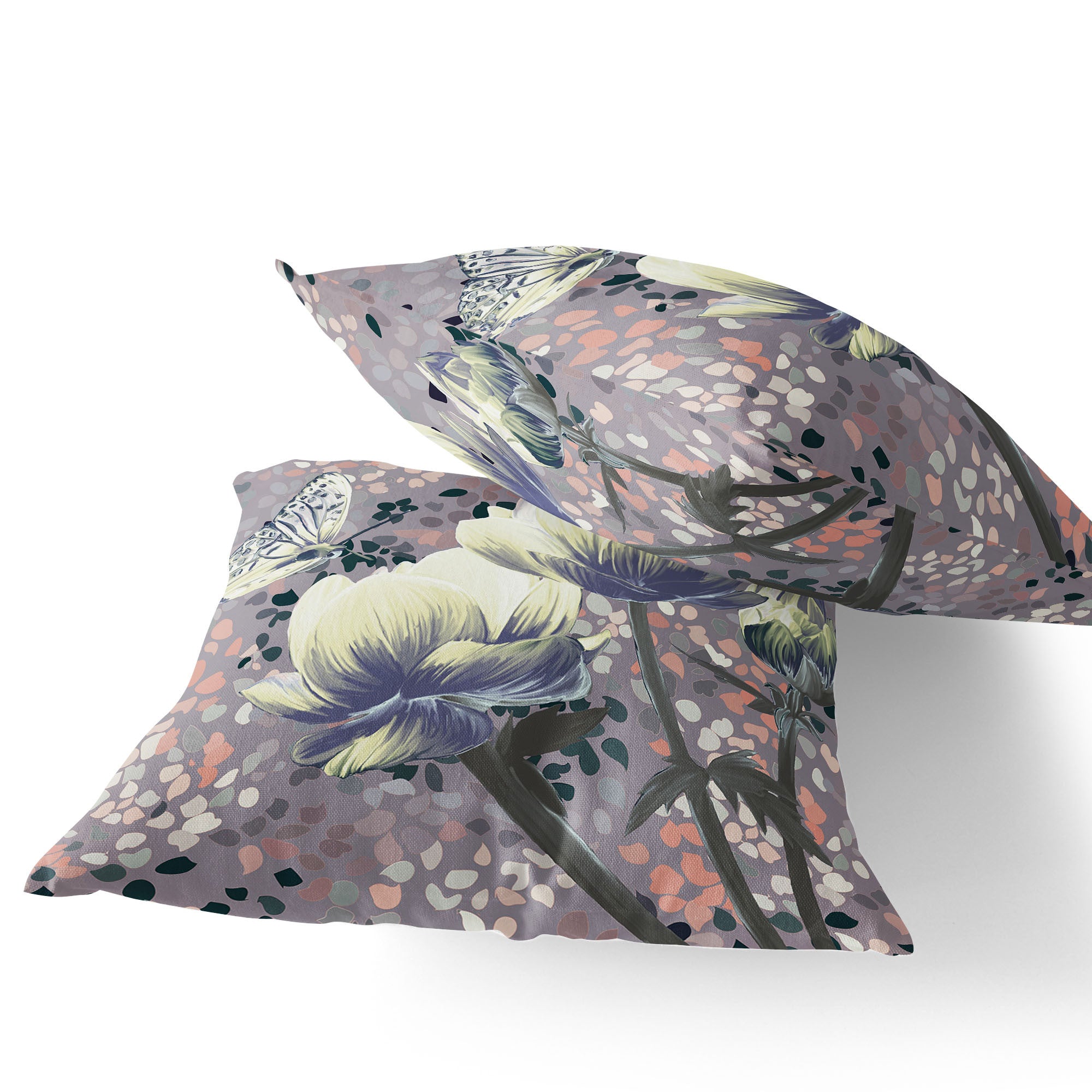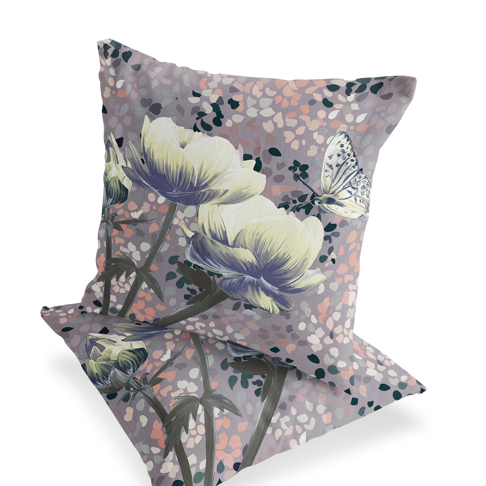 Set of Two 16" X 16" Gray and Yellow Butterfly Blown Seam Floral Indoor Outdoor Throw Pillow