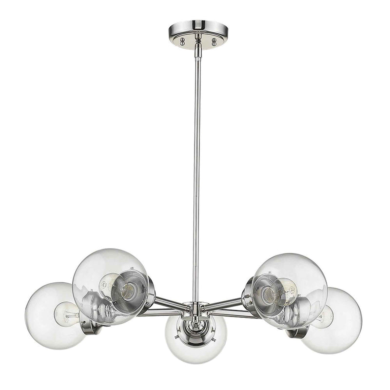 Silver Five Light Metal Dimmable Chandelier With Clear Shades