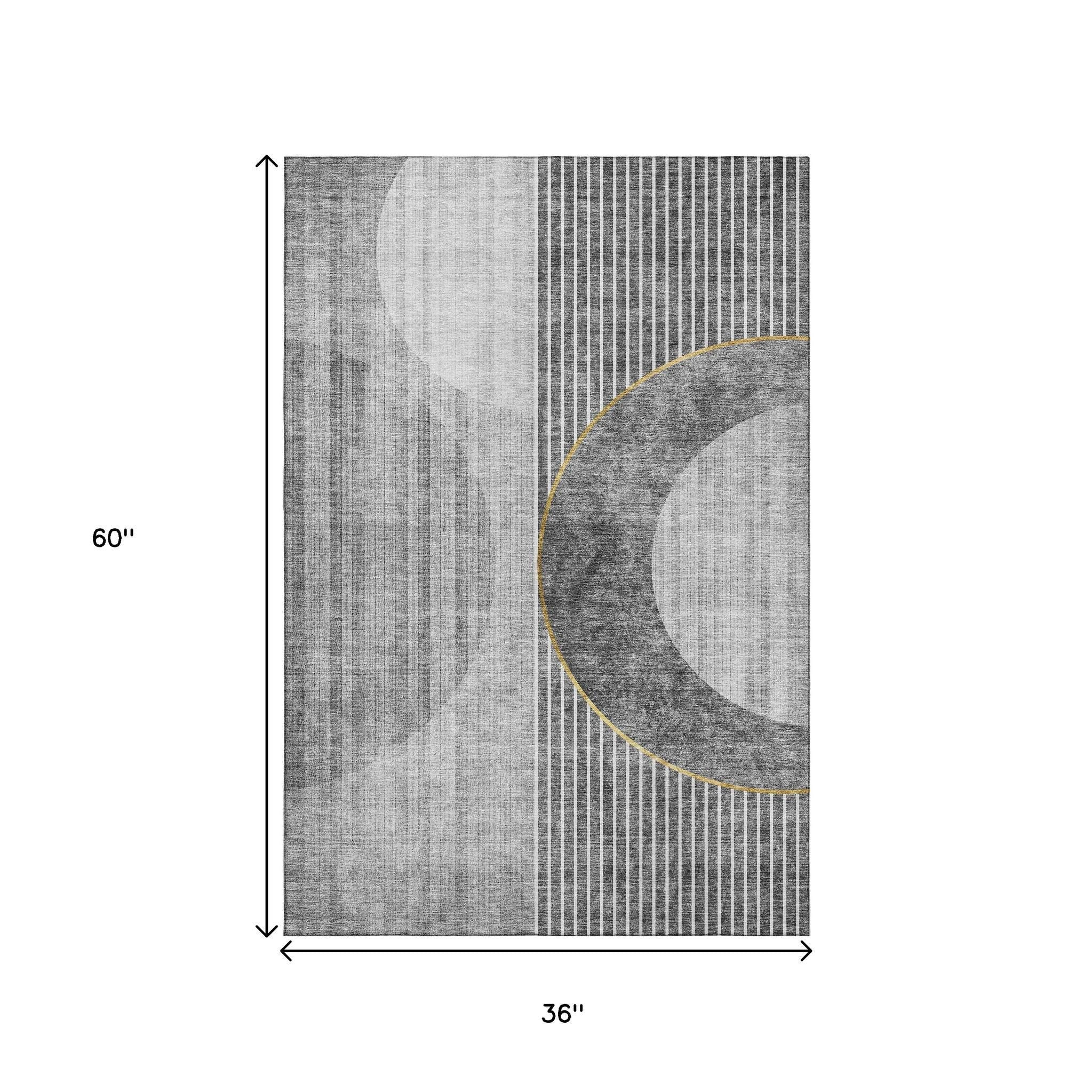 3' X 5' Charcoal Gold And Silver Geometric Washable Area Rug With UV Protection
