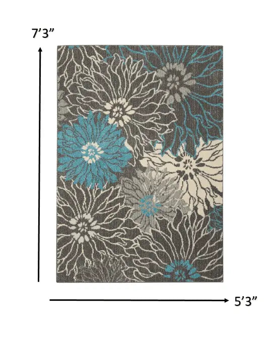 5' X 7' Blue And Gray Floral Power Loom Area Rug
