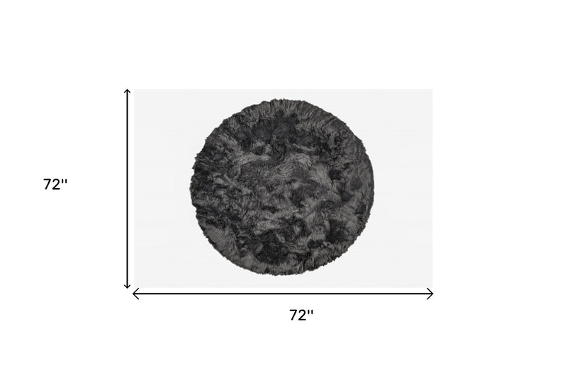 6' X 6' Grey Round Faux Fur Washable Non Skid Area Rug