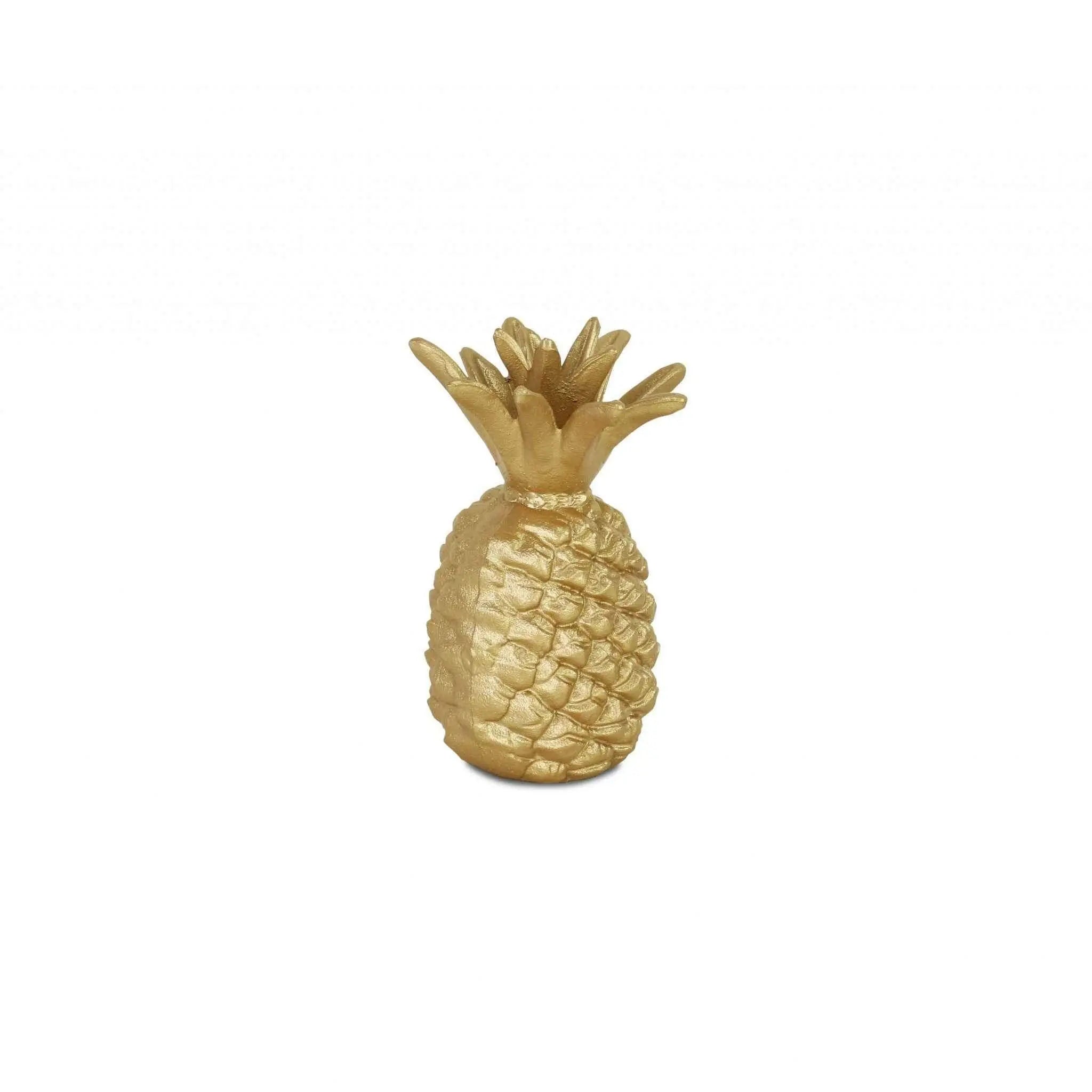8" Gold Cast Iron Pineapple Hand Painted Sculpture