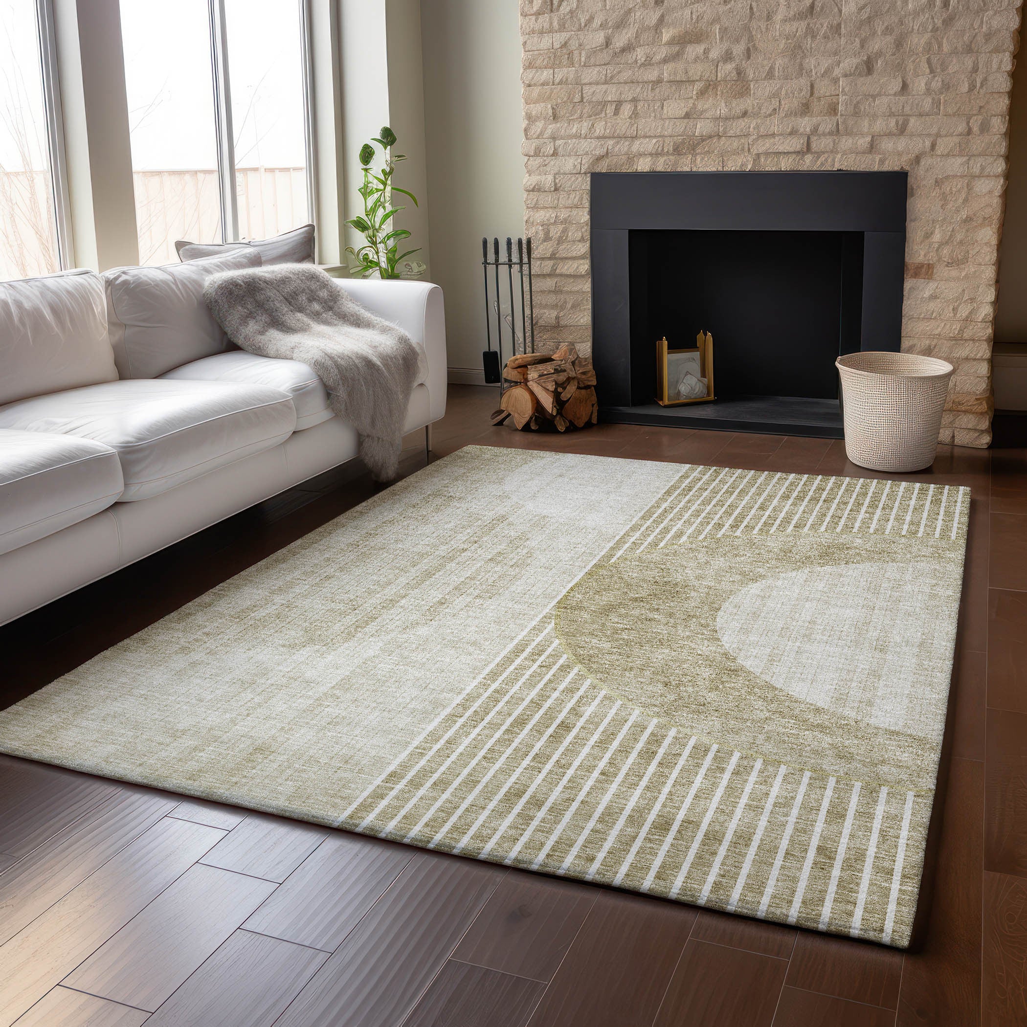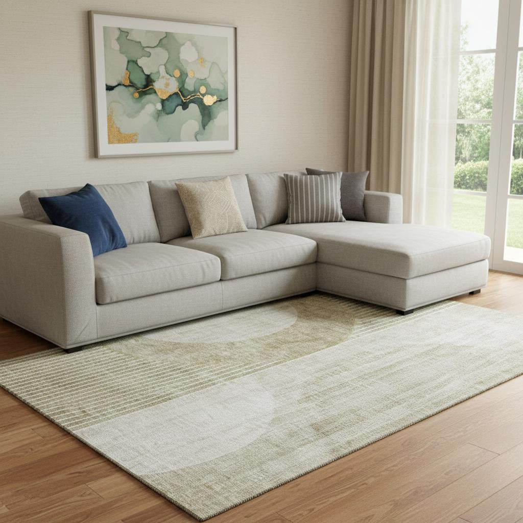 This 8-foot x 10-foot taupe and beige geometric washable area rug with uv protection, is a great way to add warmth to a room. Ideal for spaces with kids and pets, this rug is stain resistant to help repel dirt and spilled liquids. Built to last, this rug crafted from polyester fibers is known for its durability and long lasting appeal. Rugs are a great way to showcase your style, hide imperfections, warm your home and reduce noise. This larger sized, transitional styled rug is ready to create a focal point or statement piece in your room. 96.00-inch h x 120.00-inch w x 0.39-inch d.