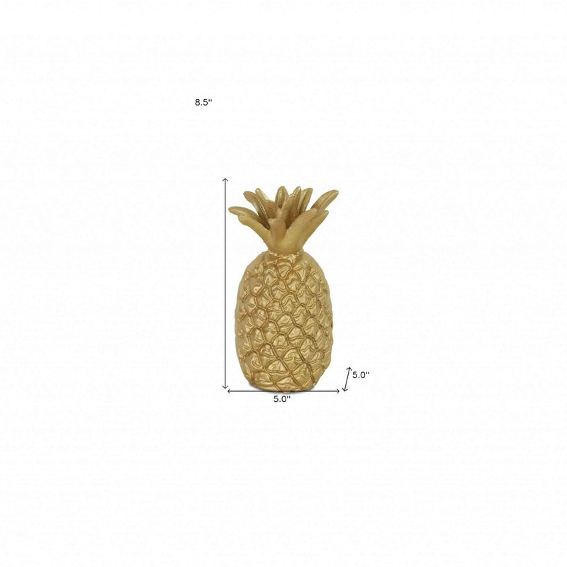 9" Gold Cast Iron Pineapple Hand Painted Sculpture