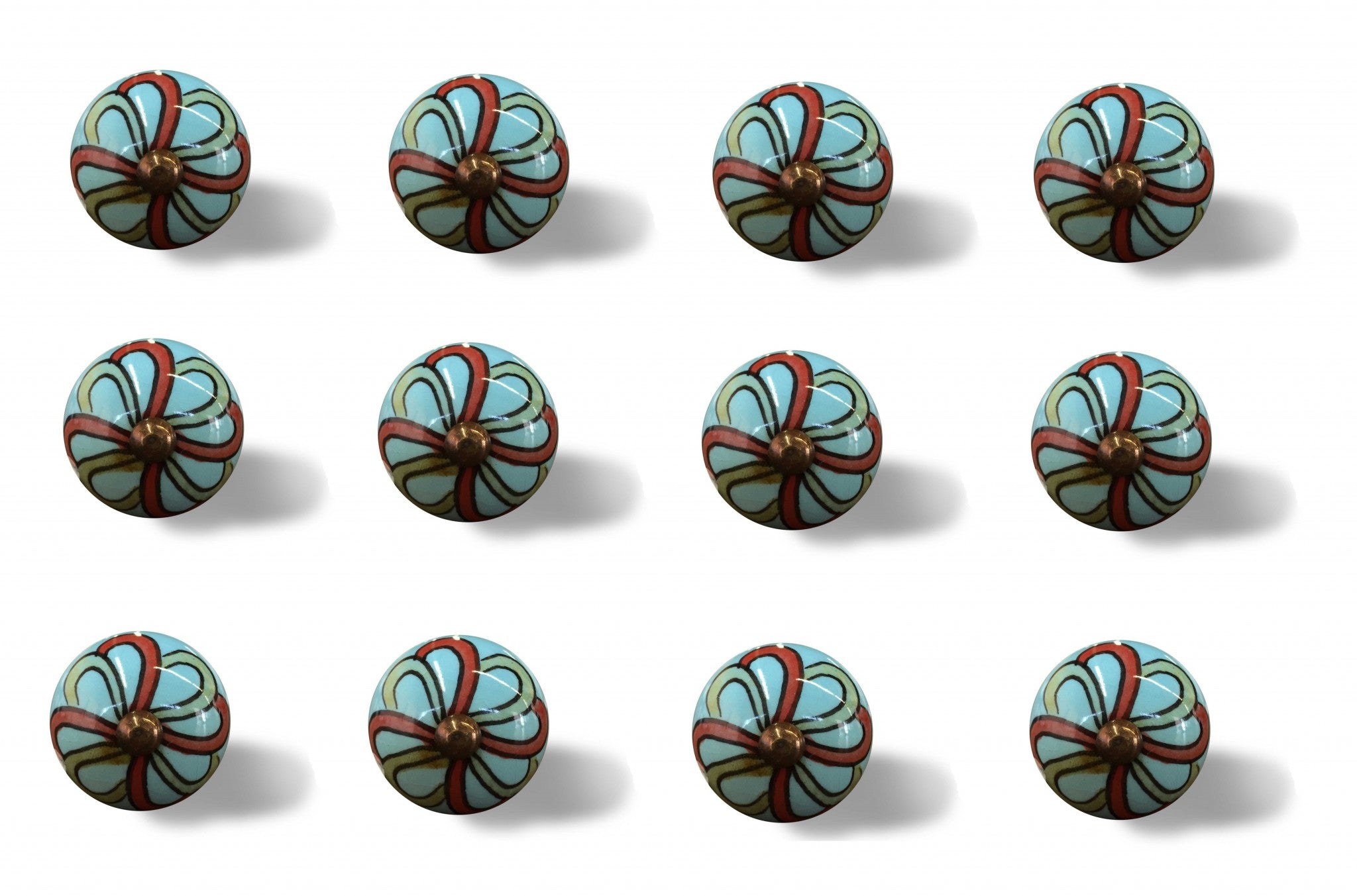 Bohemian Turquoise And Red Set Of 12 Knobs