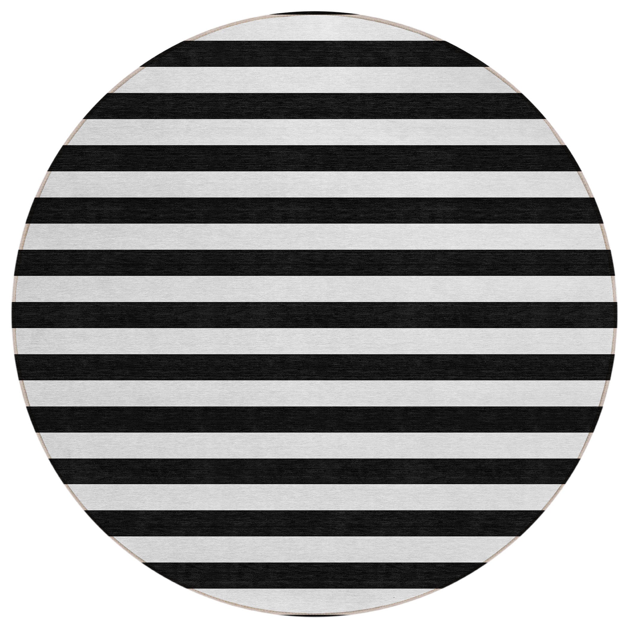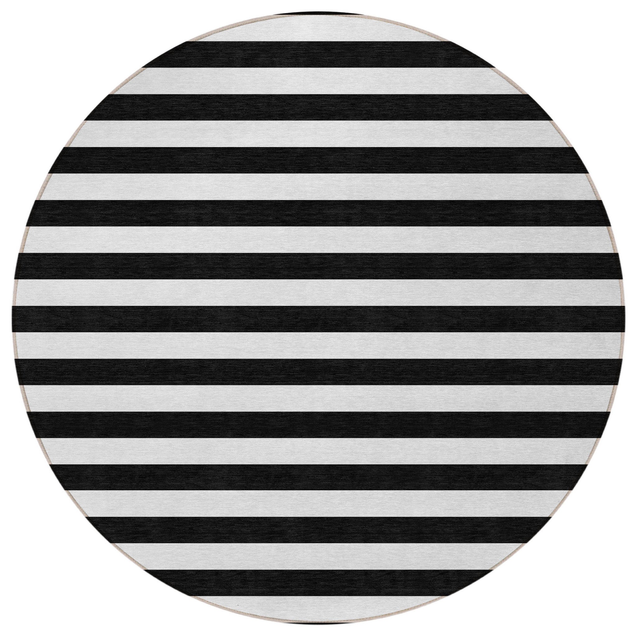 8' Round Black and White Round Striped Washable Non Skid Indoor Outdoor Area Rug