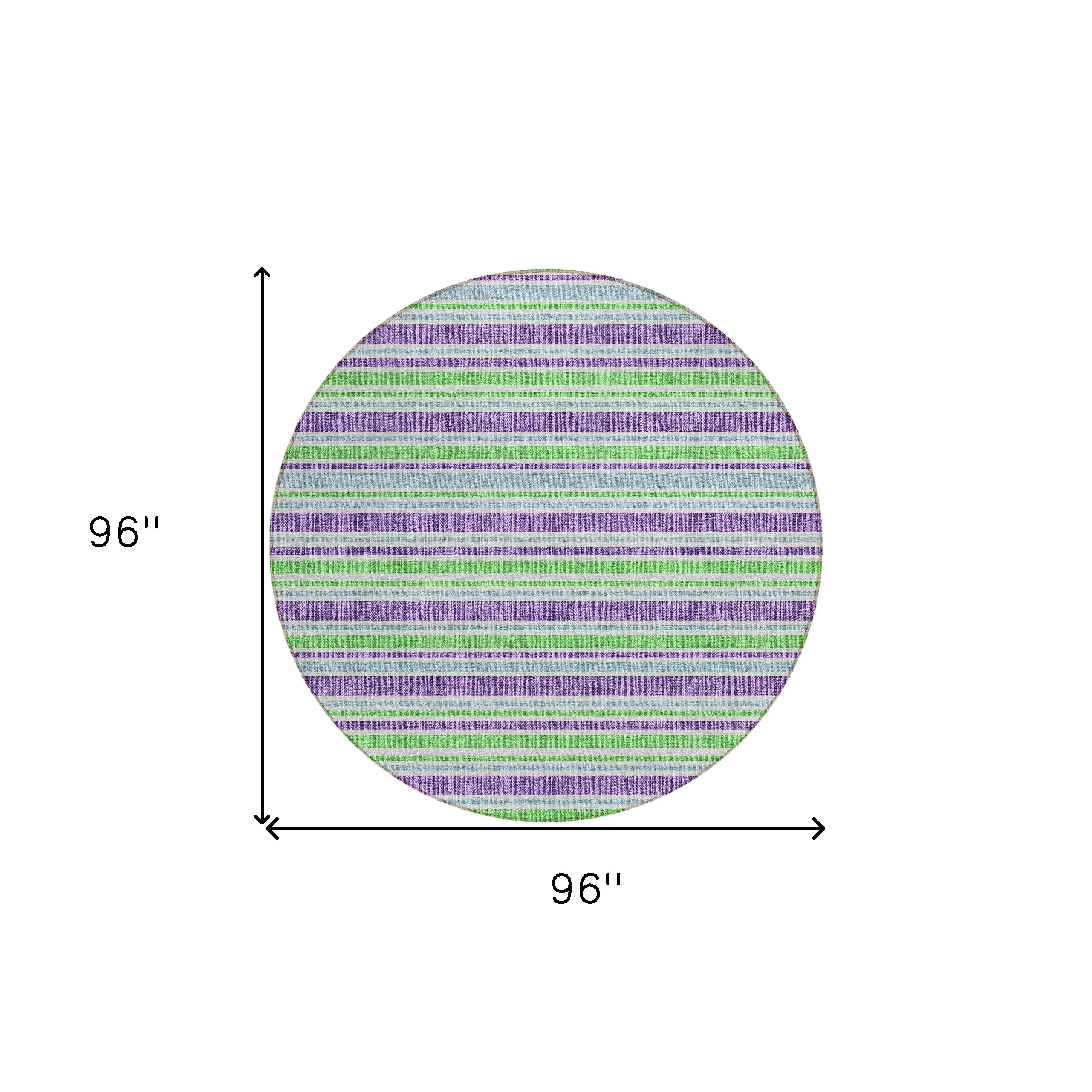 8' X 8' Green Purple and Blue Round Striped Washable Non Skid Indoor Outdoor Area Rug