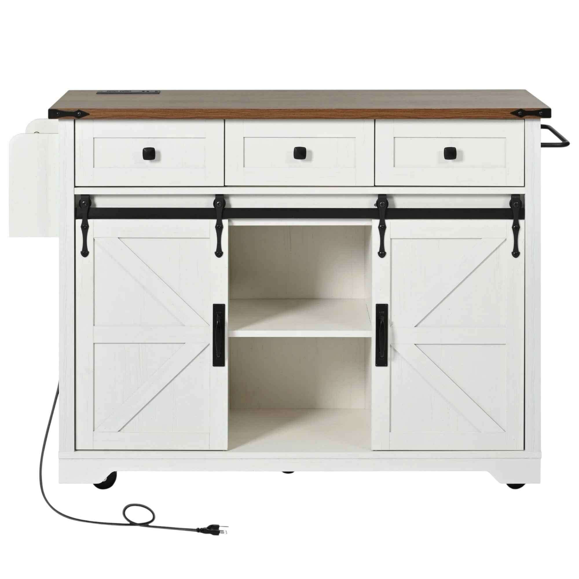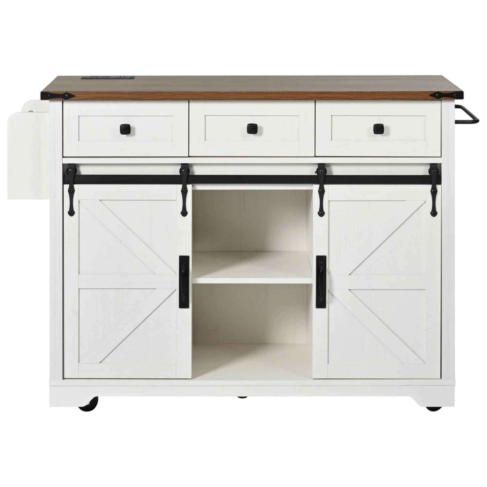 This 54-inch white wood rolling kitchen island marks the beginning of a new era for kitchen decor. Made of a combination of durable solid and manufactured wood this rectangular island is a premium organizing solution that provides extra storage and counter space in your kitchen. The beautiful grains and natural variations of the solid wood give this piece its own unique appearance. Utilize the convenient drawers to store your cooking utensils and accessories. This unit features a drop leaf, so that you can easily expand or scale down your counter space. Enhance the beauty and functionality of your kitchen space with this multi-purpose kitchen island. 36.50-inch h x 53.75-inch w x 28.75-inch d.