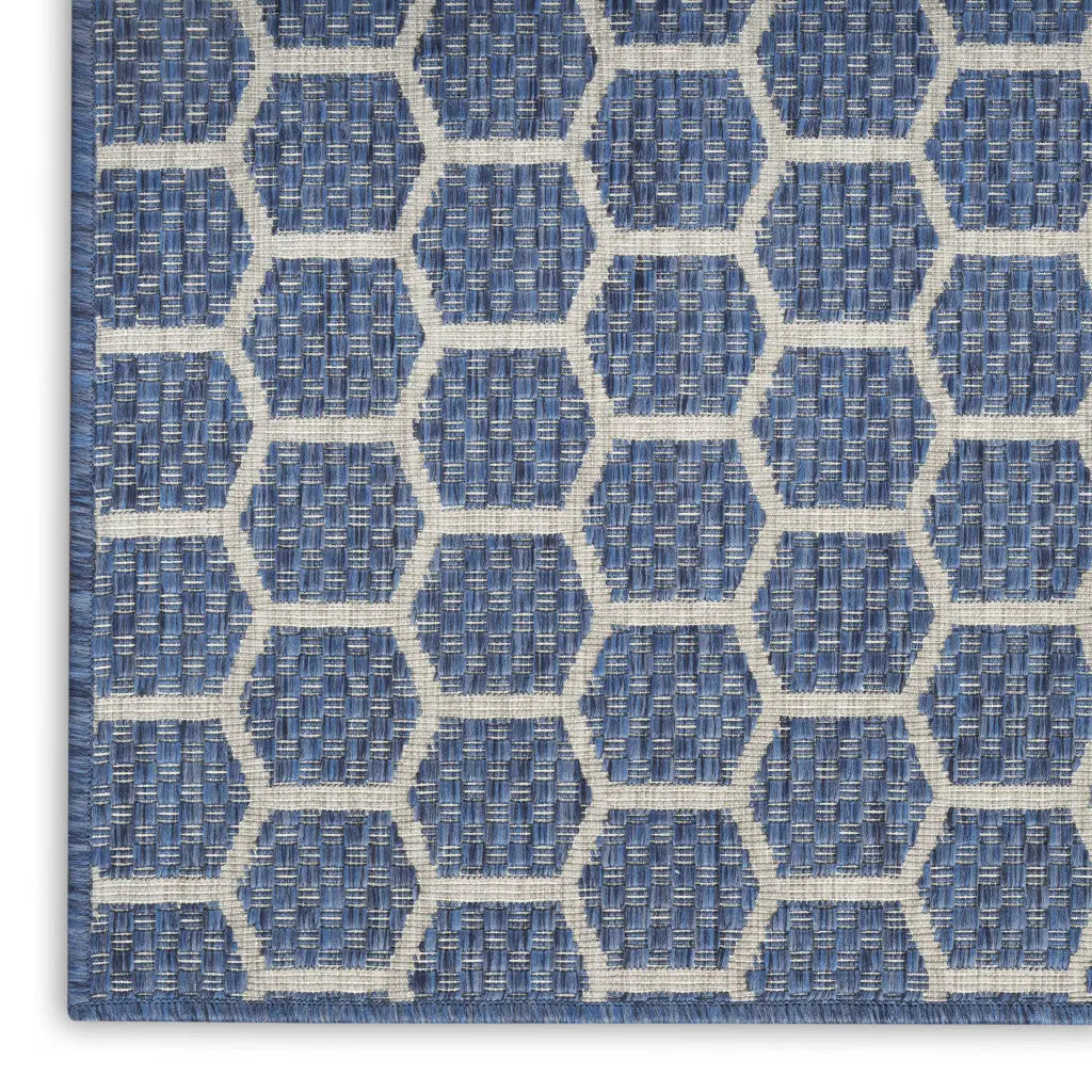 4' X 6' Blue And Ivory Geometric Indoor Outdoor Area Rug