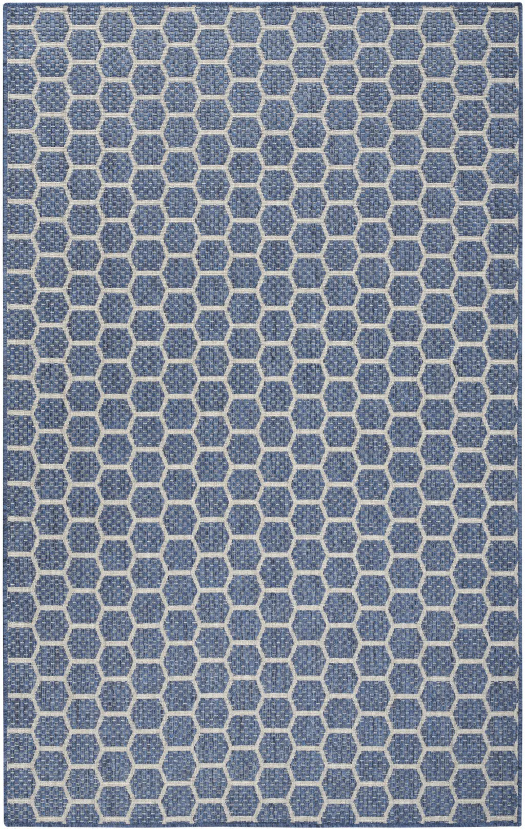 Set an inviting tone in your space with this 4-foot x 6-foot blue and ivory geometric indoor outdoor area rug. This rectangle shaped rug features a geometric design that will work well both indoors or out. A classic shape marries with good looking design for your living room, hall, bedroom, porch, patio, or poolside. Makes a great way to dress up your patio, porch, or poolside, but also works well as a durable and easy to maintain option in the kitchen, family room, or mudroom. 72-inch h x 108-inch w x 0.23-inch d.