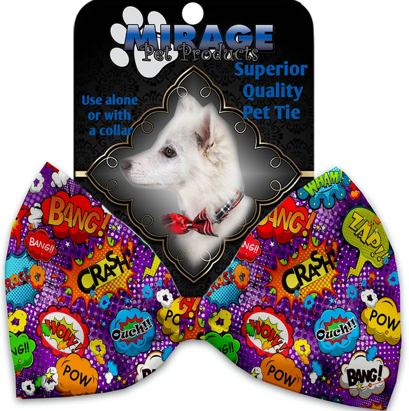 Purple Comic Sound Effects Pet Bow Tie Collar Accessory With Velcro