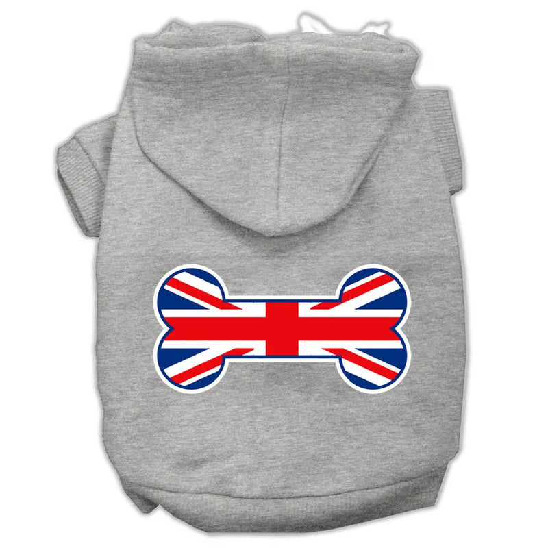 Bone Shaped United Kingdom (union Jack) Flag Screen Print Pet Hoodies Grey Xxl Default Title