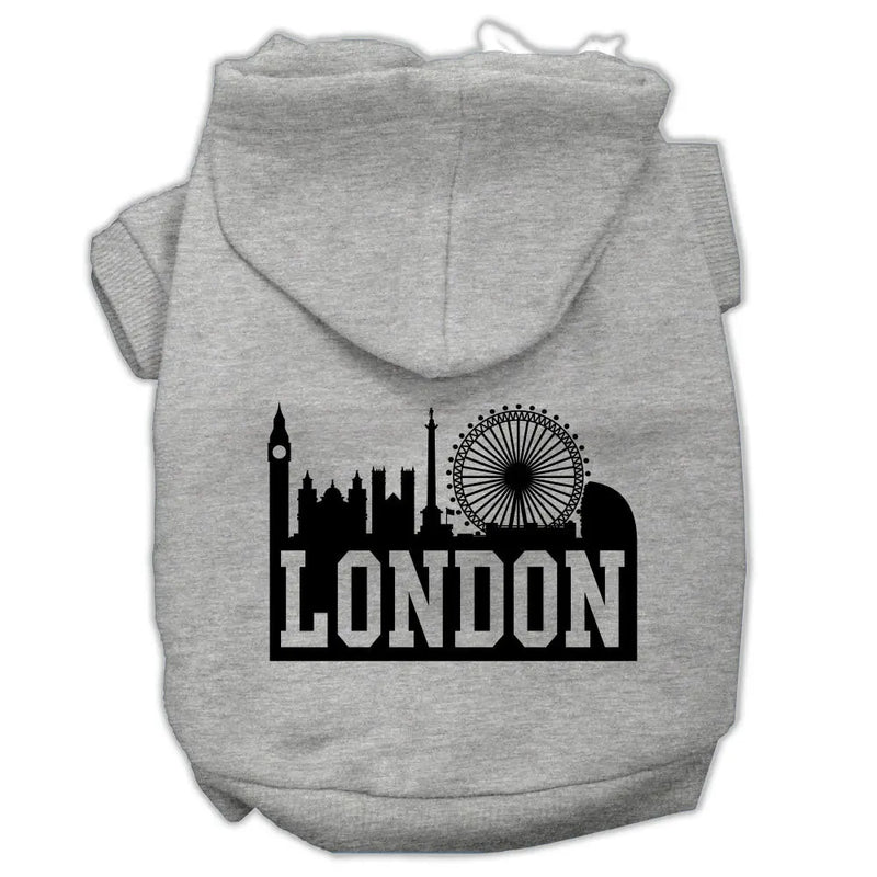 London Skyline Screen Print Pet Hoodies Grey Size Sm Default Title