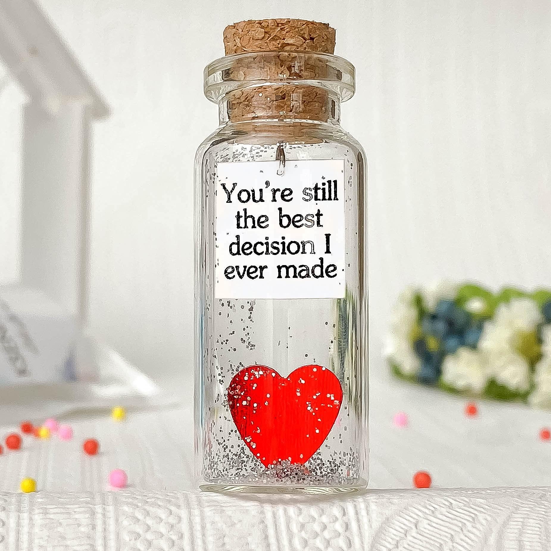 for Her & Him Romantic Present for Boyfriend Girlfriend Custom Message I Love You Gifts to Wife Husband (Heart You're Still The Best Decision I Ever Made in a Bottle)