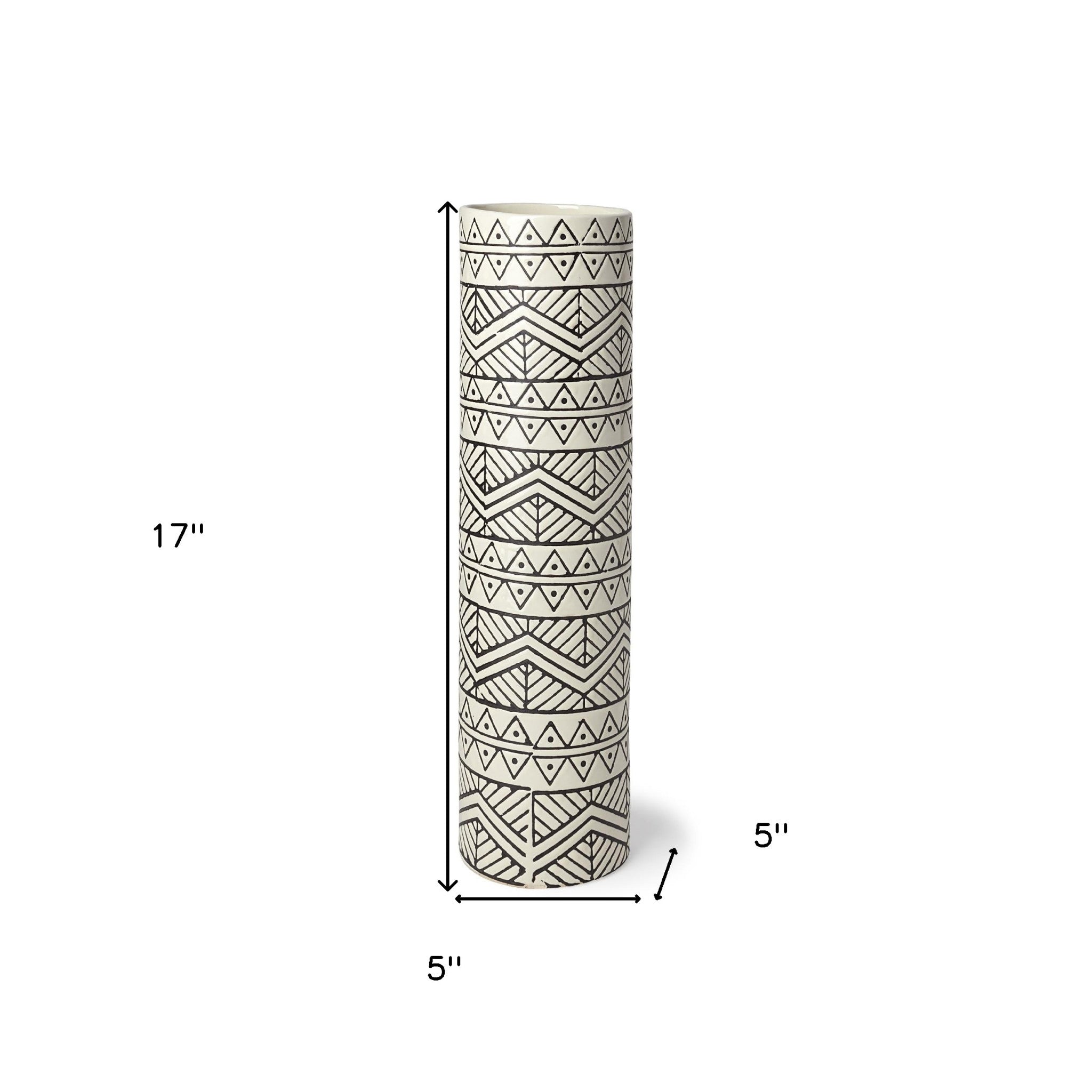 17" Ceramic Cream Geometric Cylinder Table Vase
