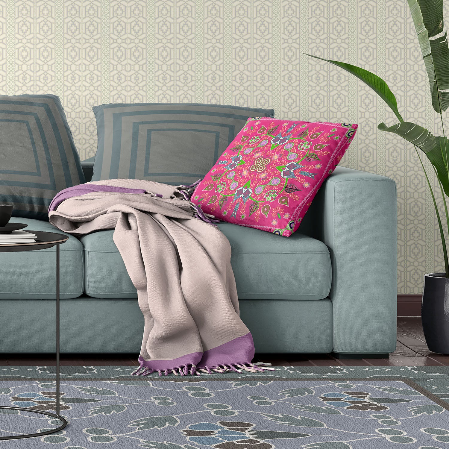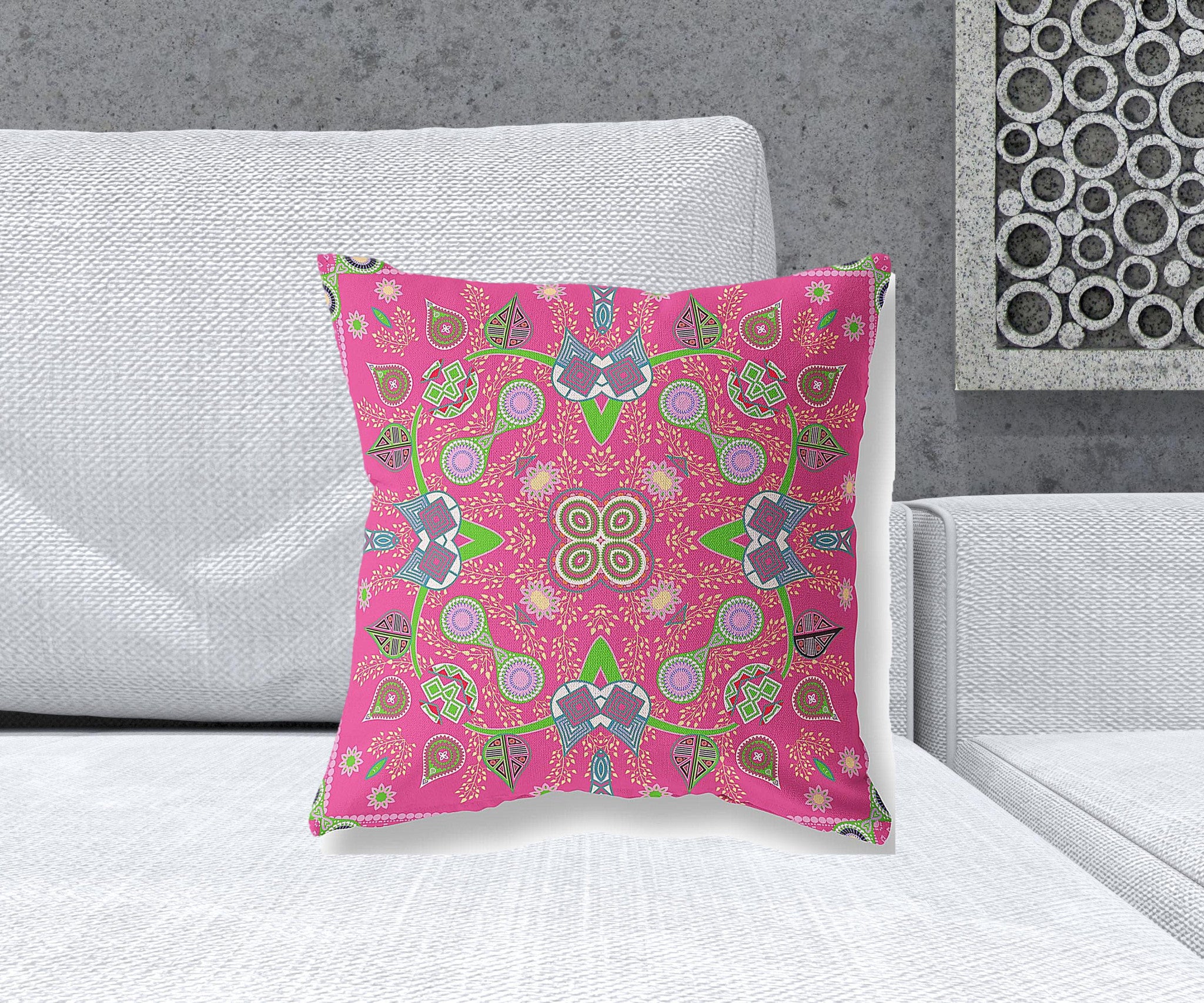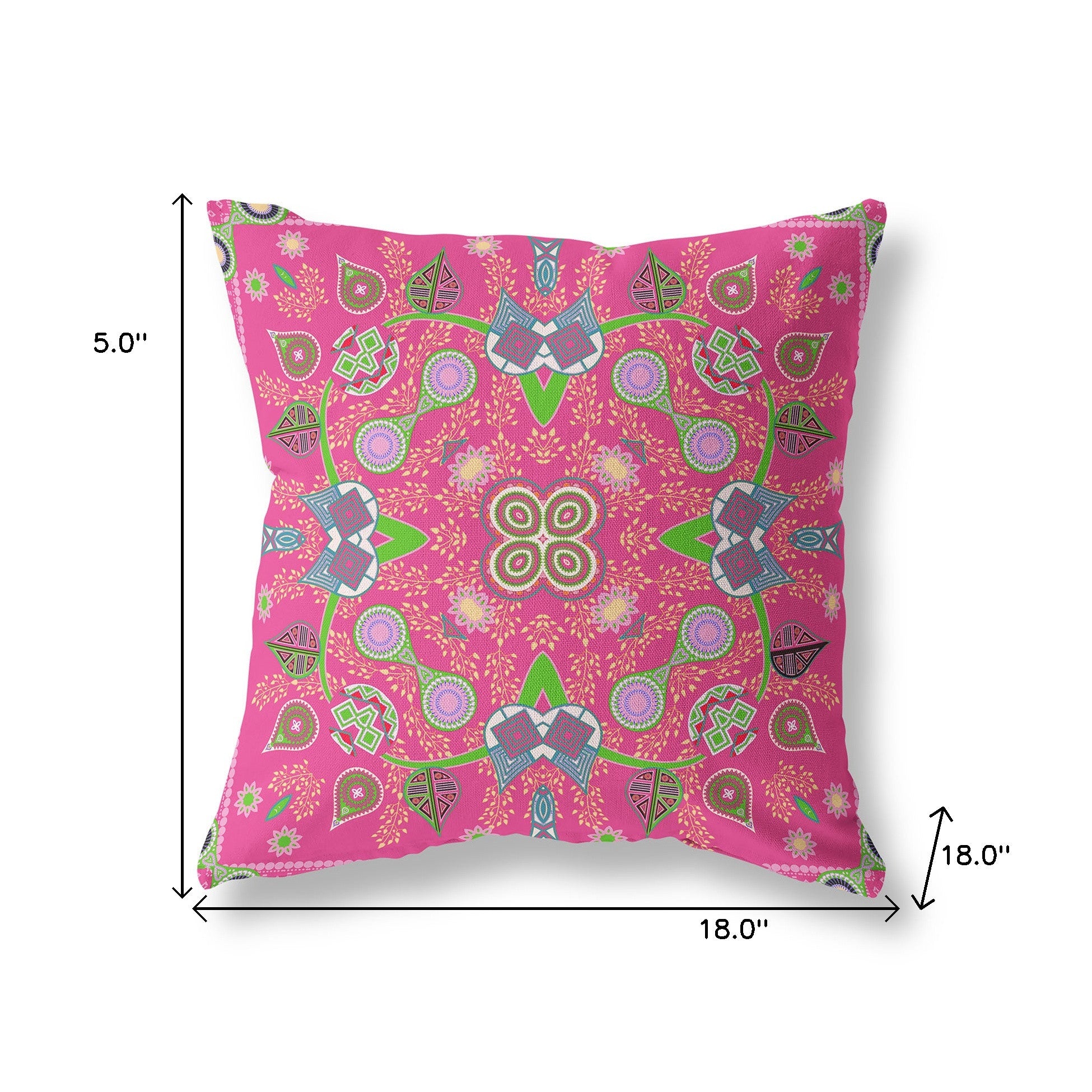 18" x 18" Hot Pink Blown Seam Paisley Indoor Outdoor Throw Pillow