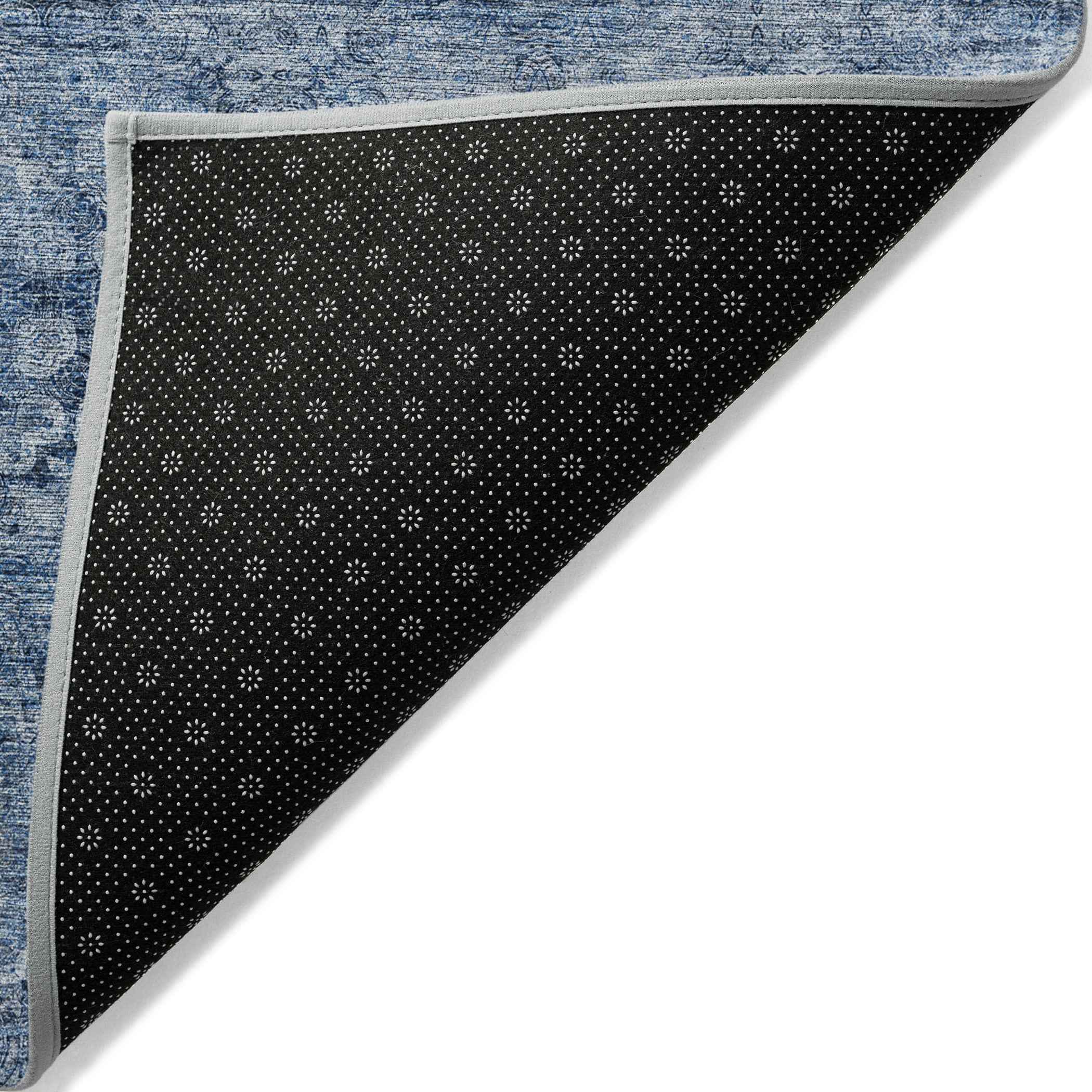 2' X 3' Navy Blue Floral Medallion Washable Non Skid Indoor Outdoor Area Rug