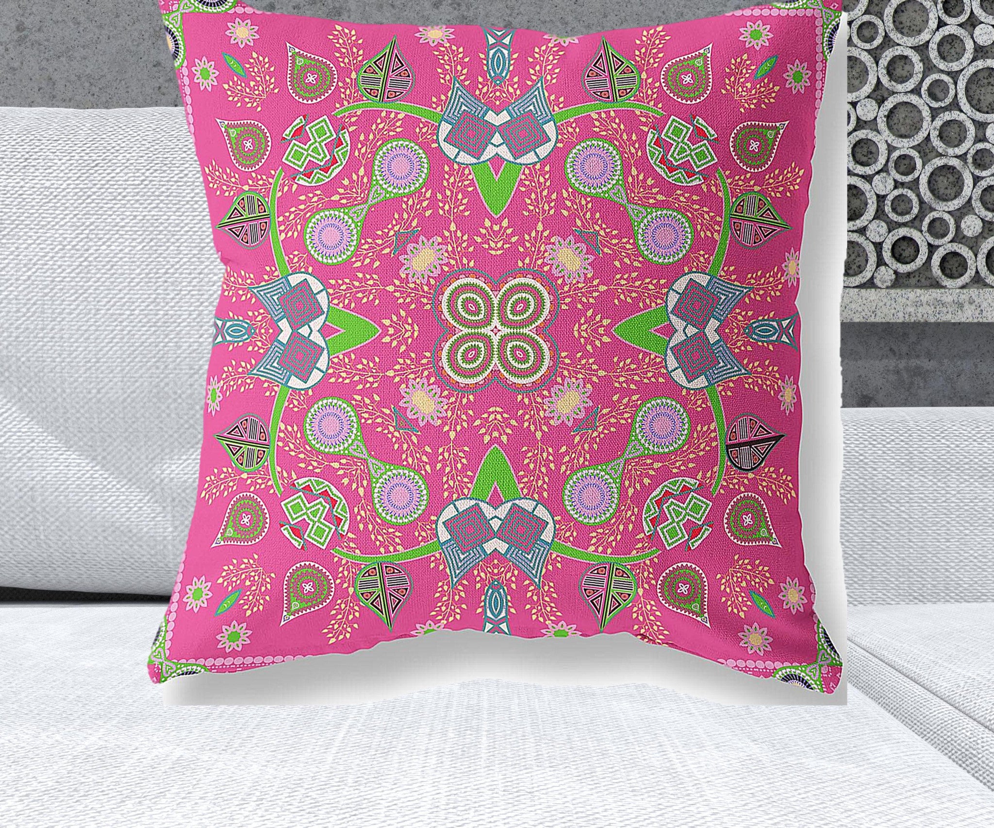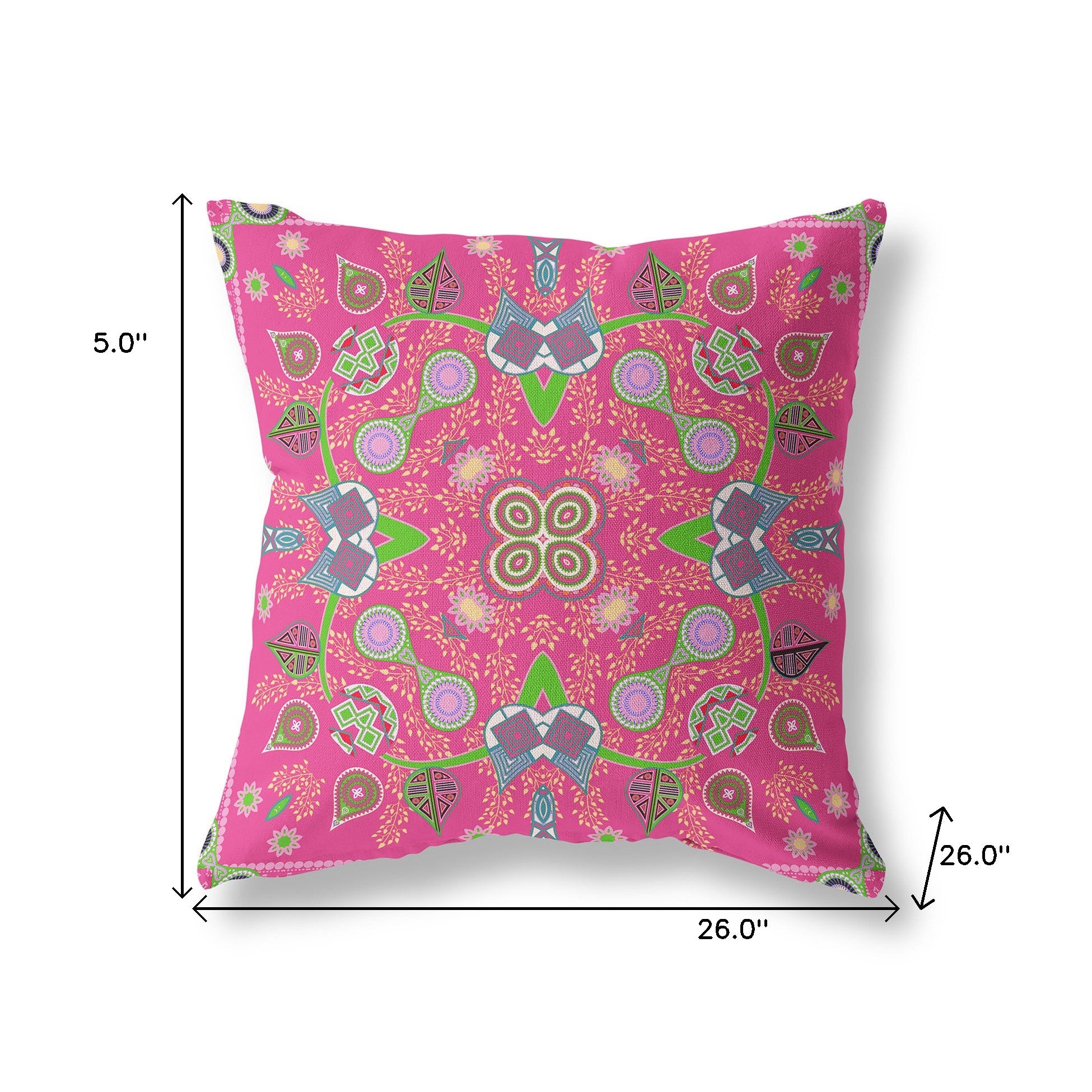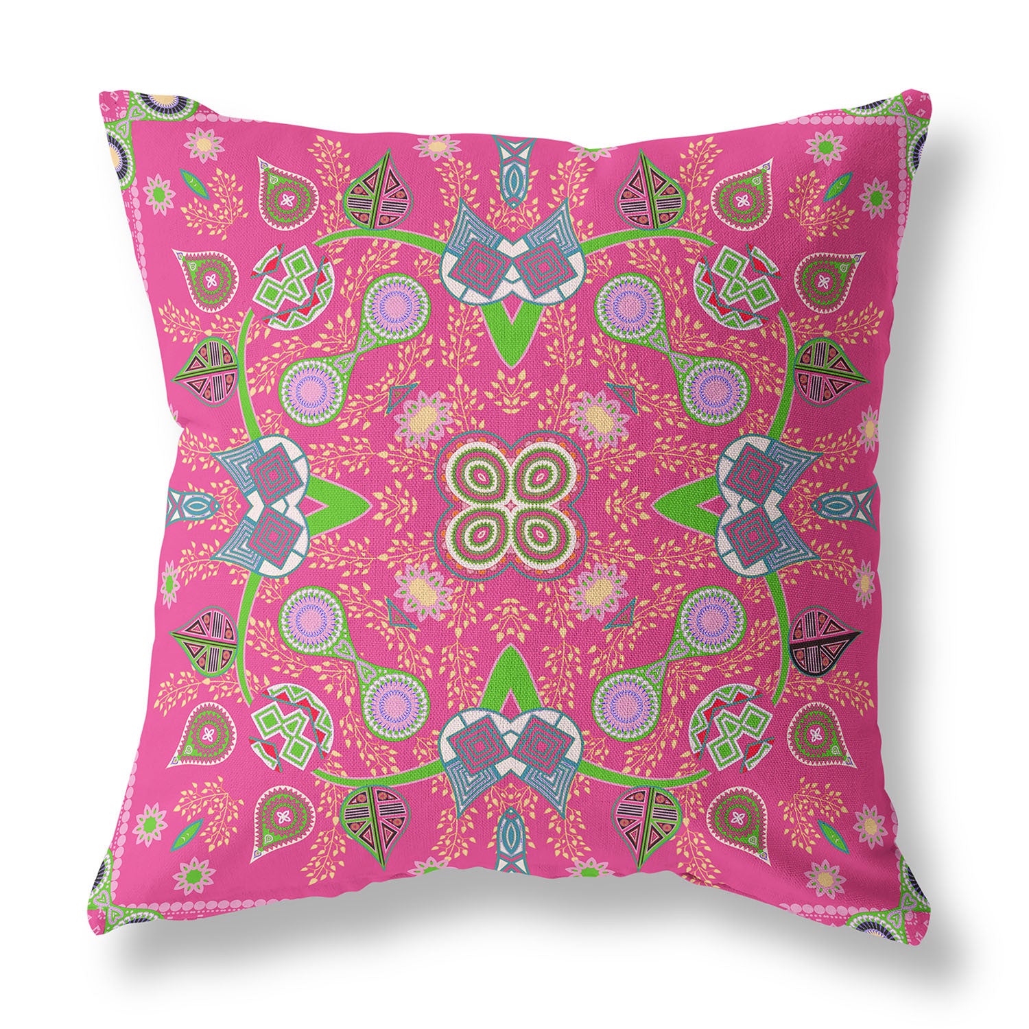 26" x 26" Hot Pink Blown Seam Paisley Indoor Outdoor Throw Pillow