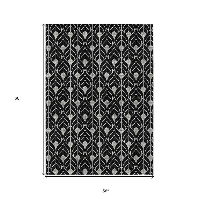 3' X 5' Black And Ivory Geometric Washable Indoor Outdoor Area Rug