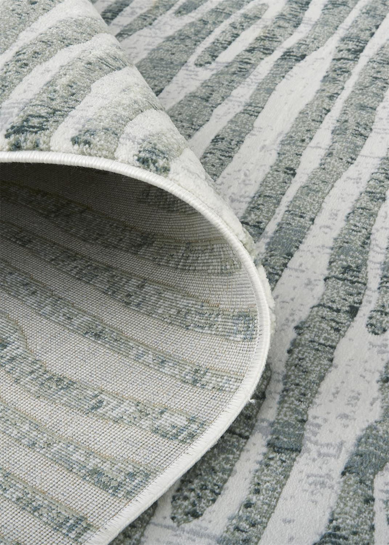 3' X 5' Gray Green And Ivory Striped Distressed Stain Resistant Area Rug
