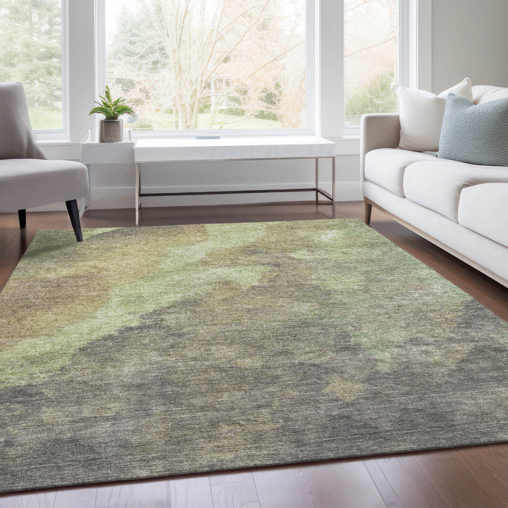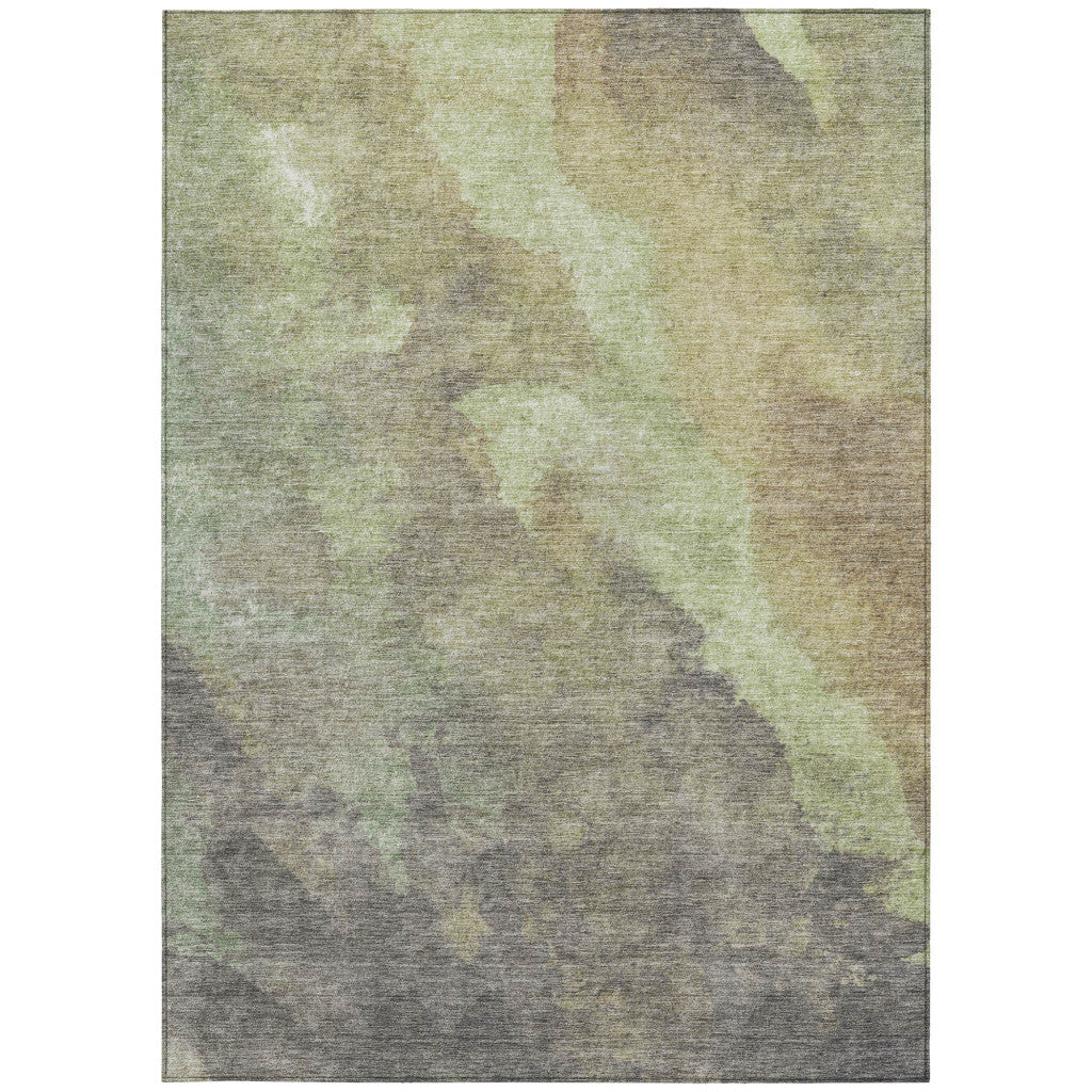 5' X 8' Artichoke Green And Taupe Abstract Washable Indoor Outdoor Area Rug