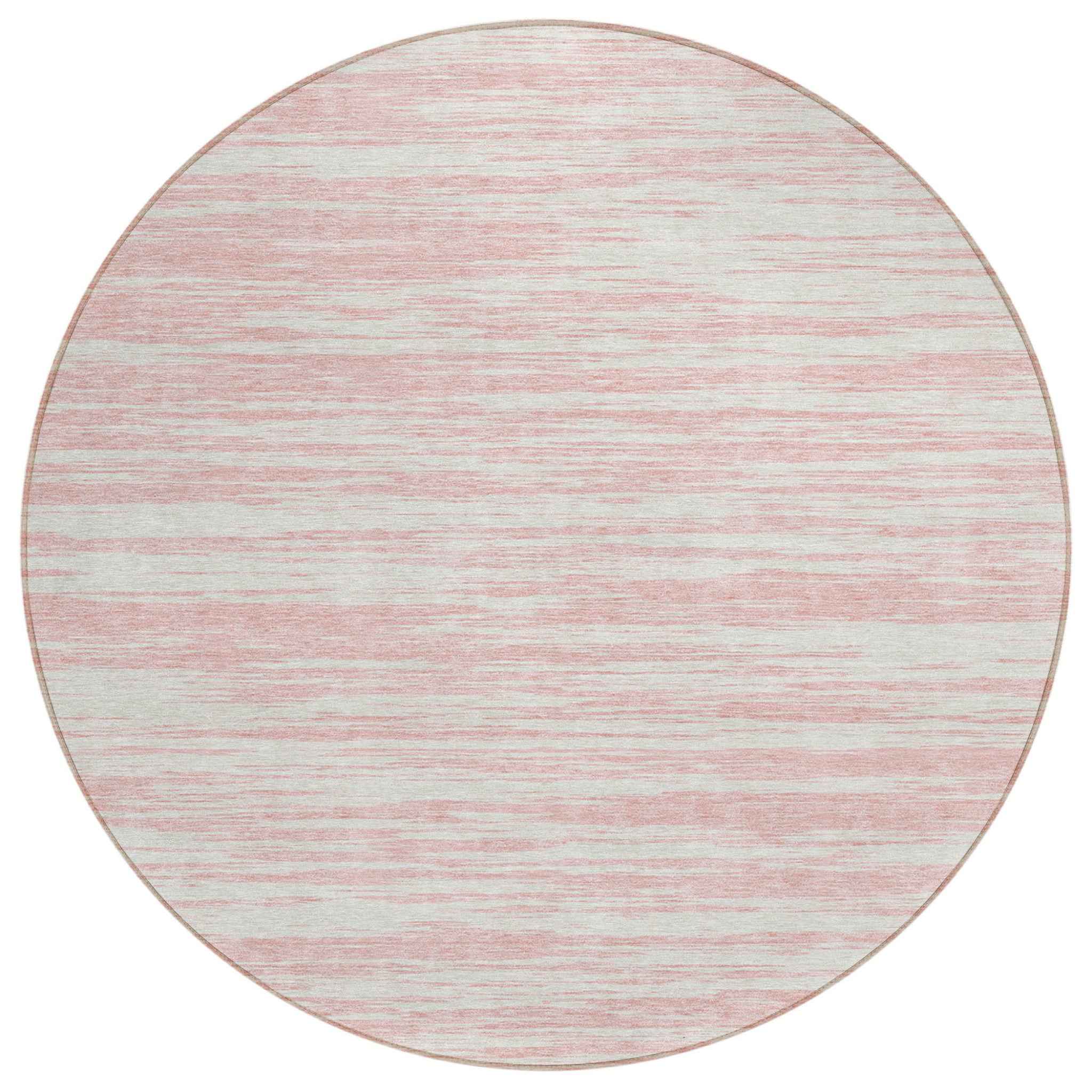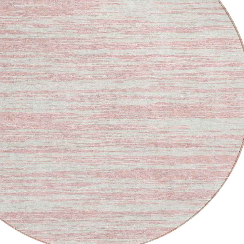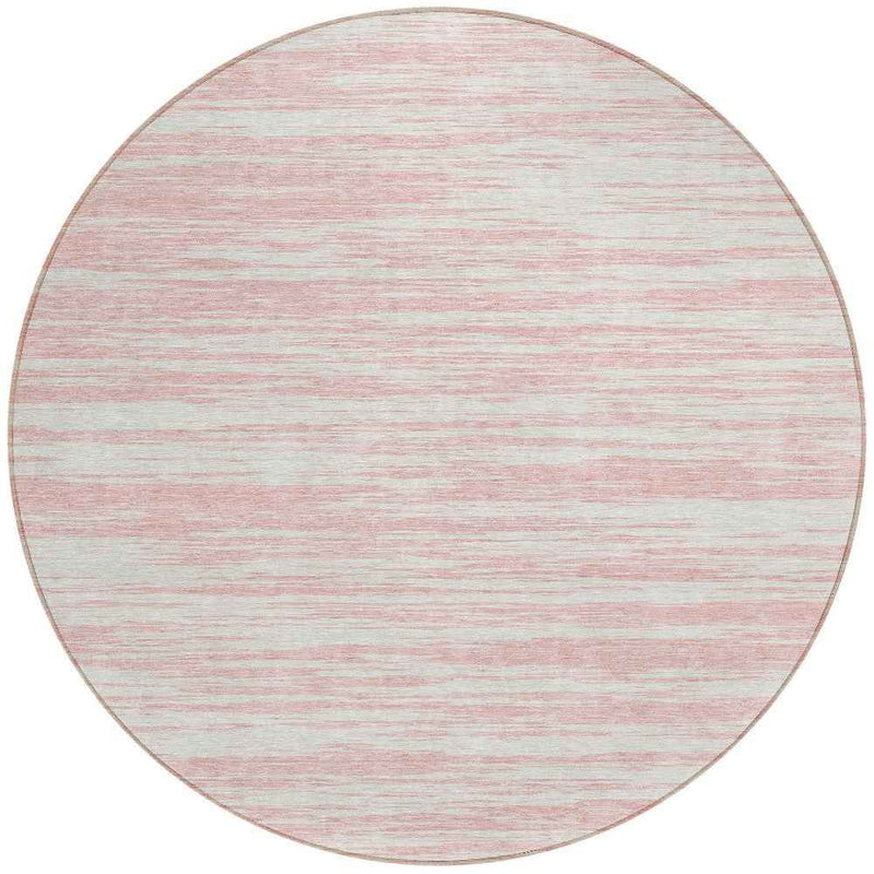 8' Pink And Ivory Round Abstract Washable Indoor Outdoor Area Rug