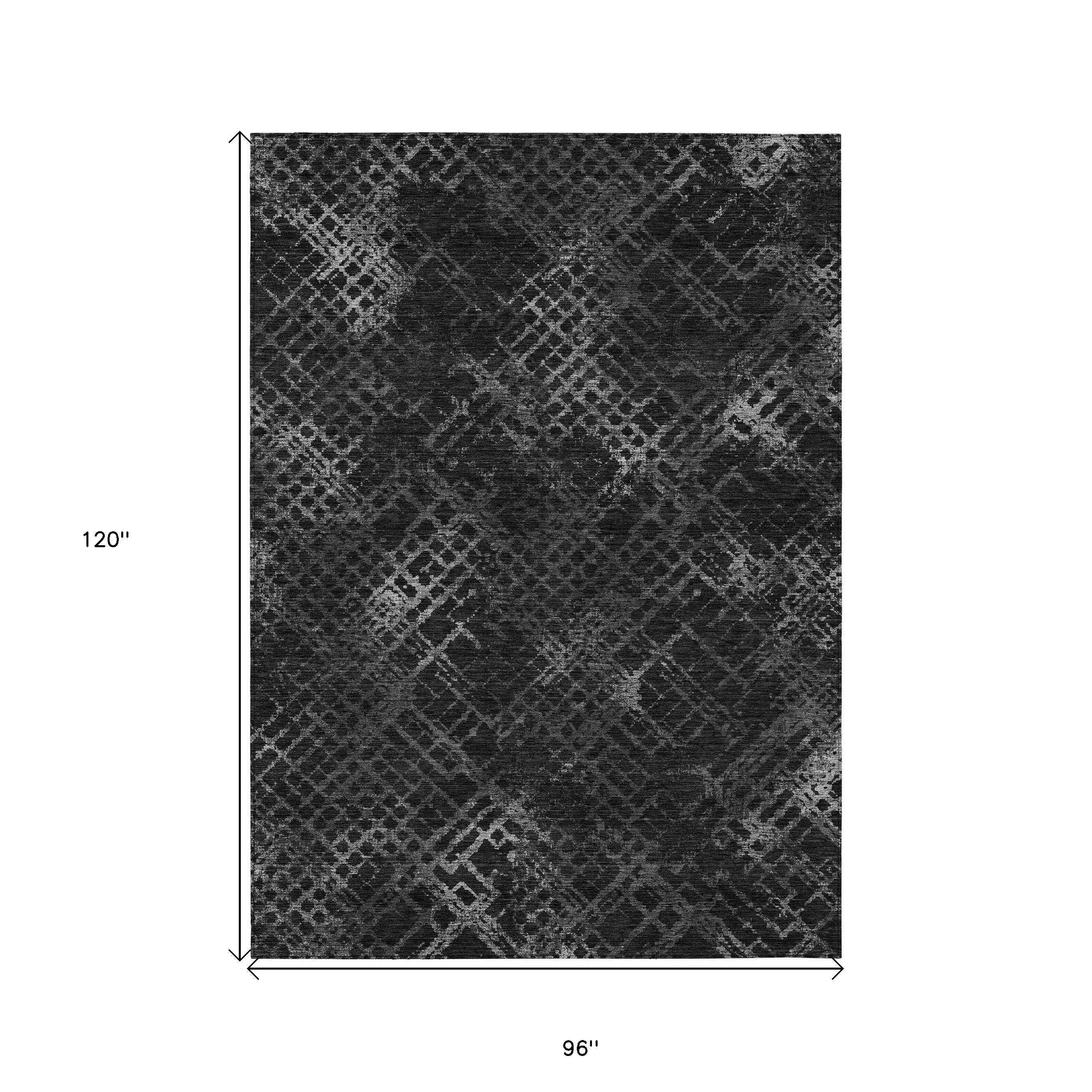8' X 10' Charcoal Gray And Silver Geometric Washable Indoor Outdoor Area Rug