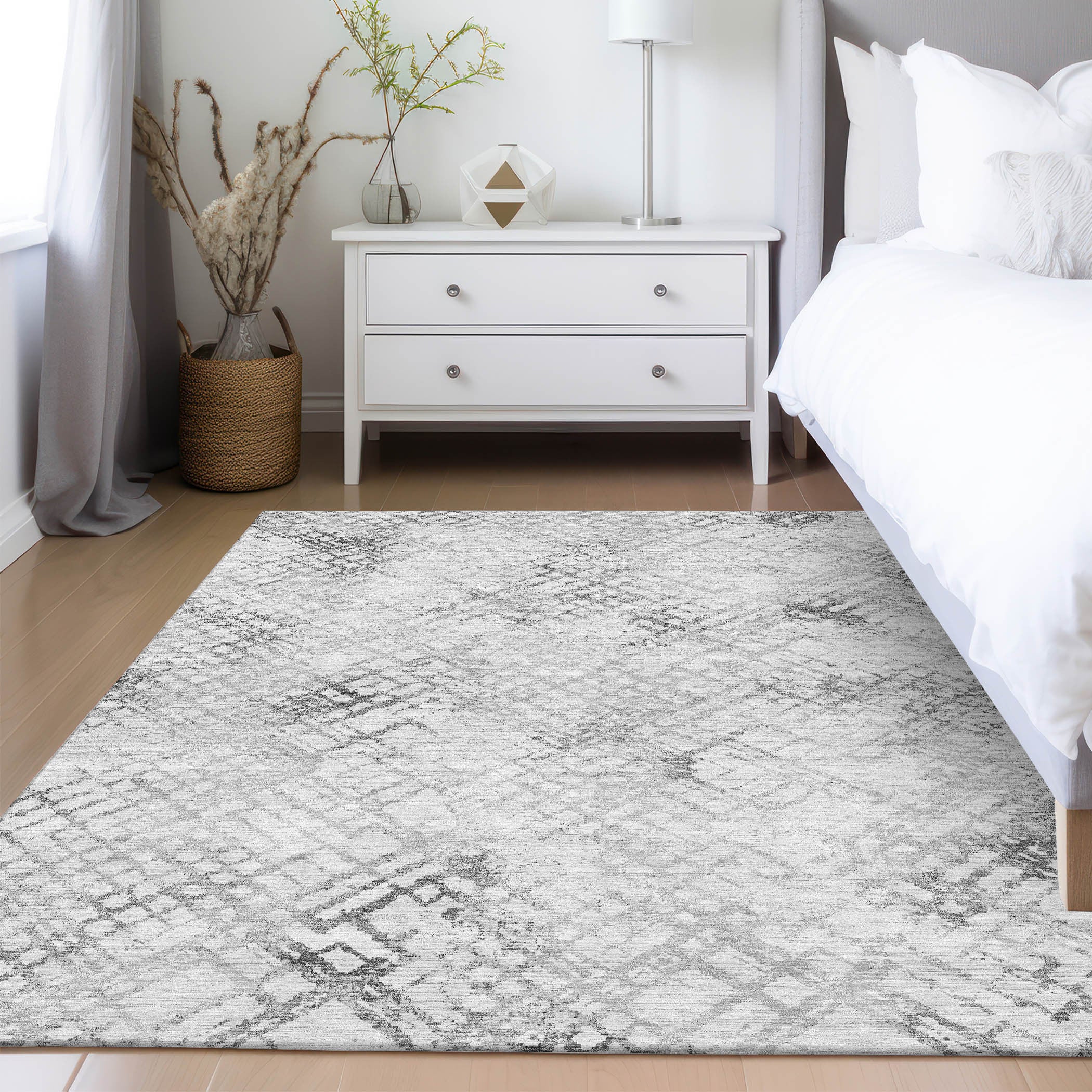 8' X 10' Gray Charcoal And Silver Geometric Washable Indoor Outdoor Area Rug